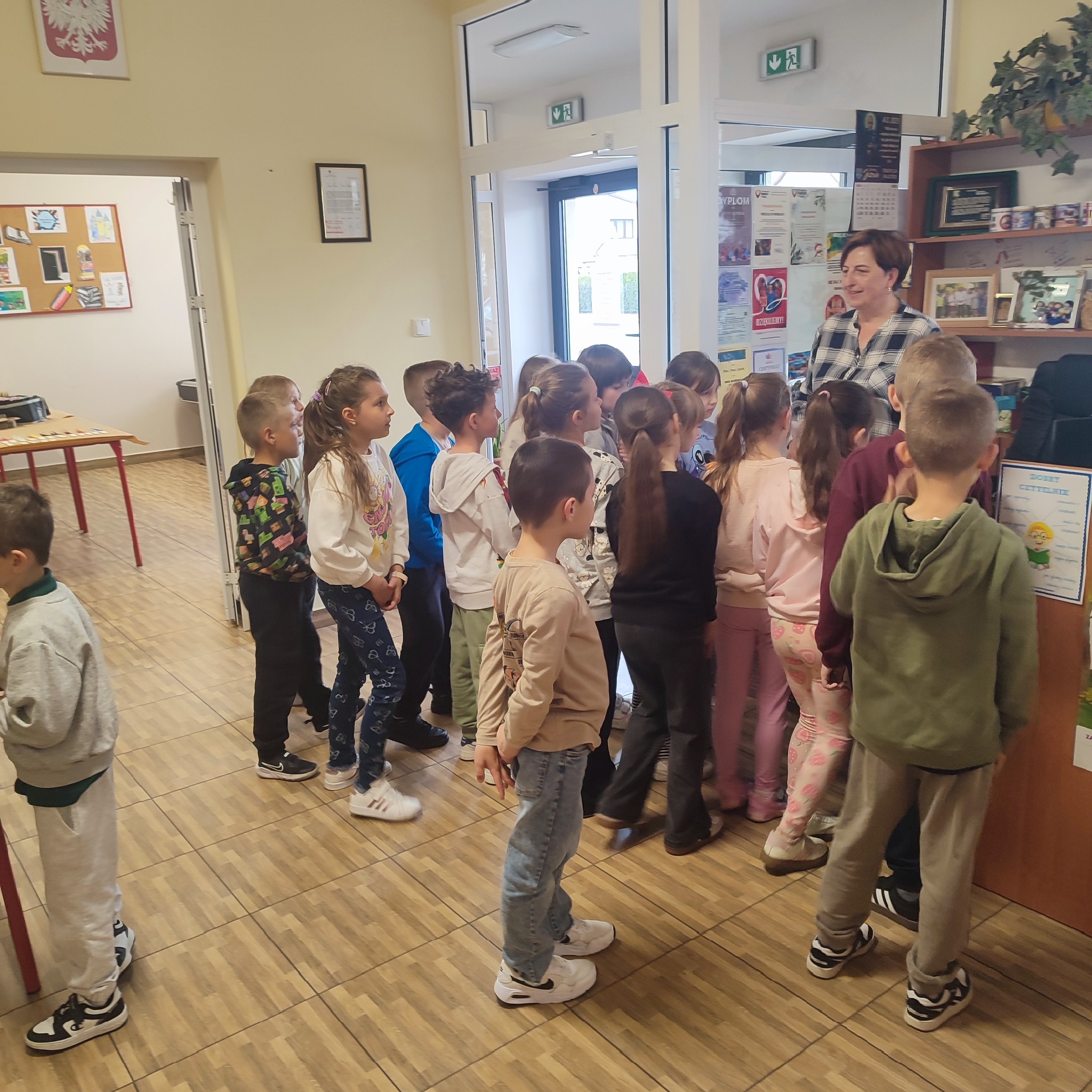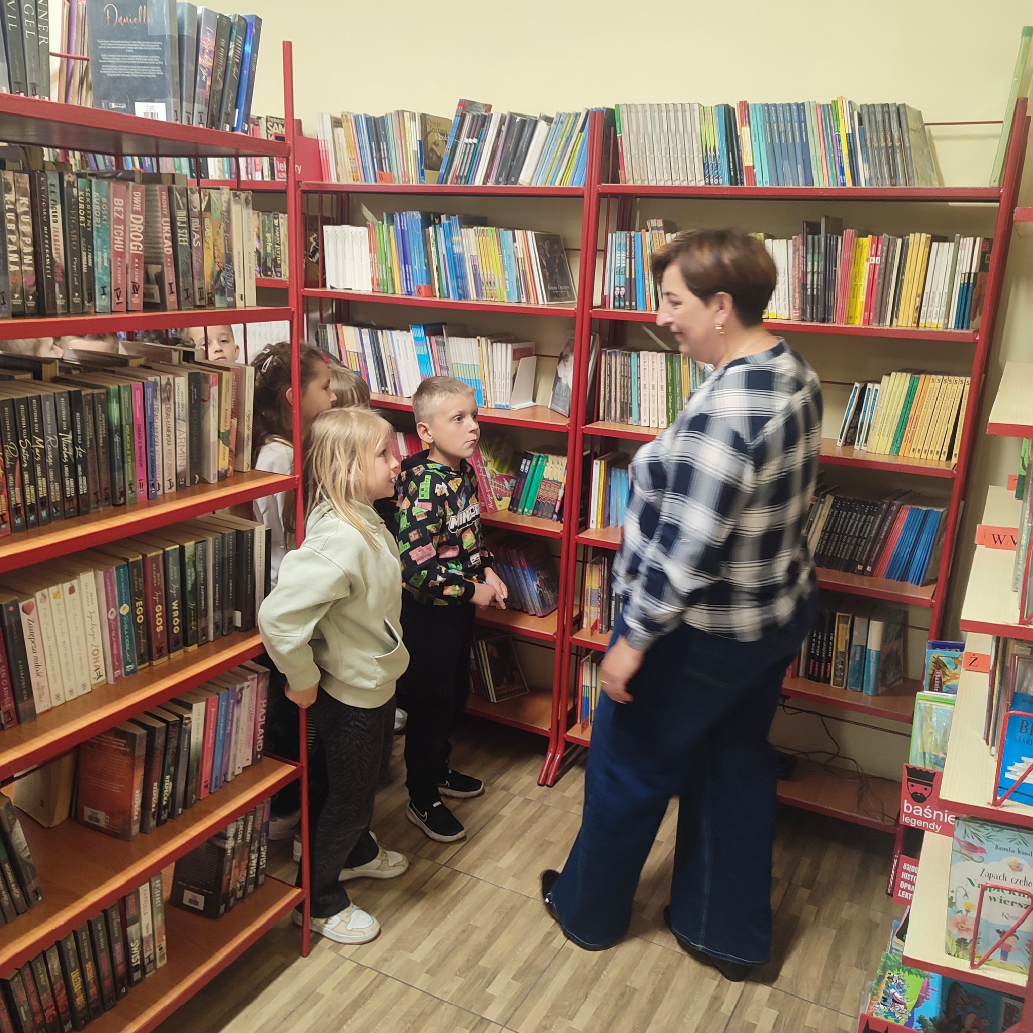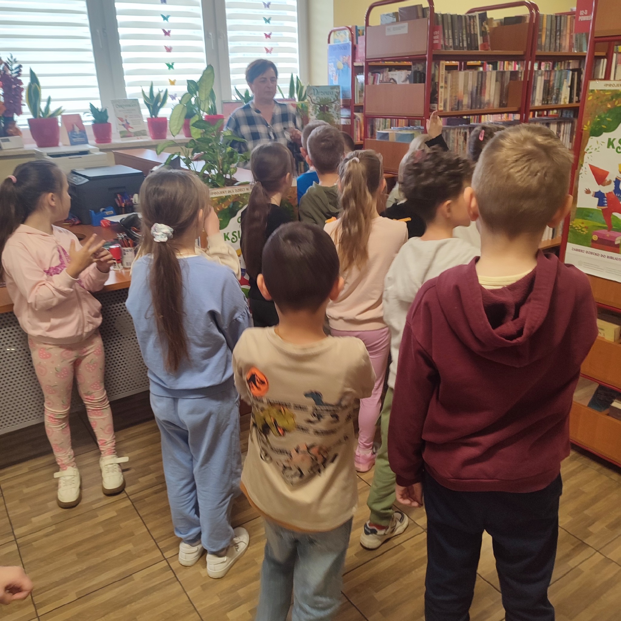 W poniedziałek naszą bibliotekę odwiedziła klasa 1 z Publicznej Szkoły Podstawowej w Groblach wraz z wychowawczynią panią Karoliną Wraga oraz panią Bożeną Drzymała.