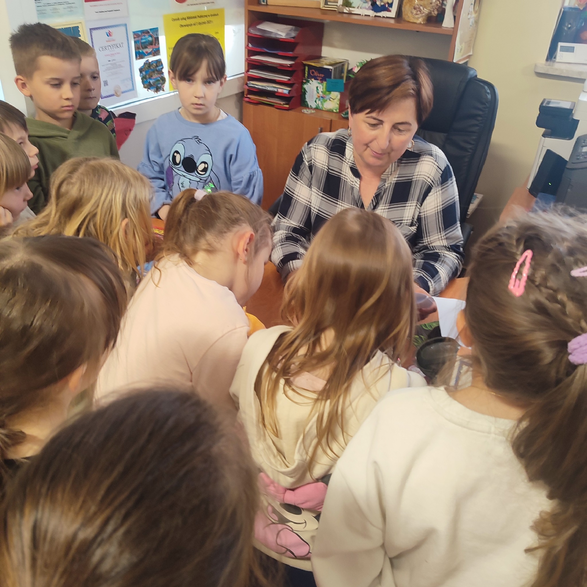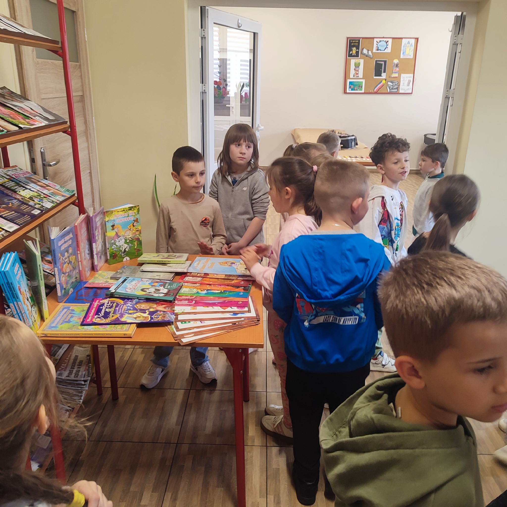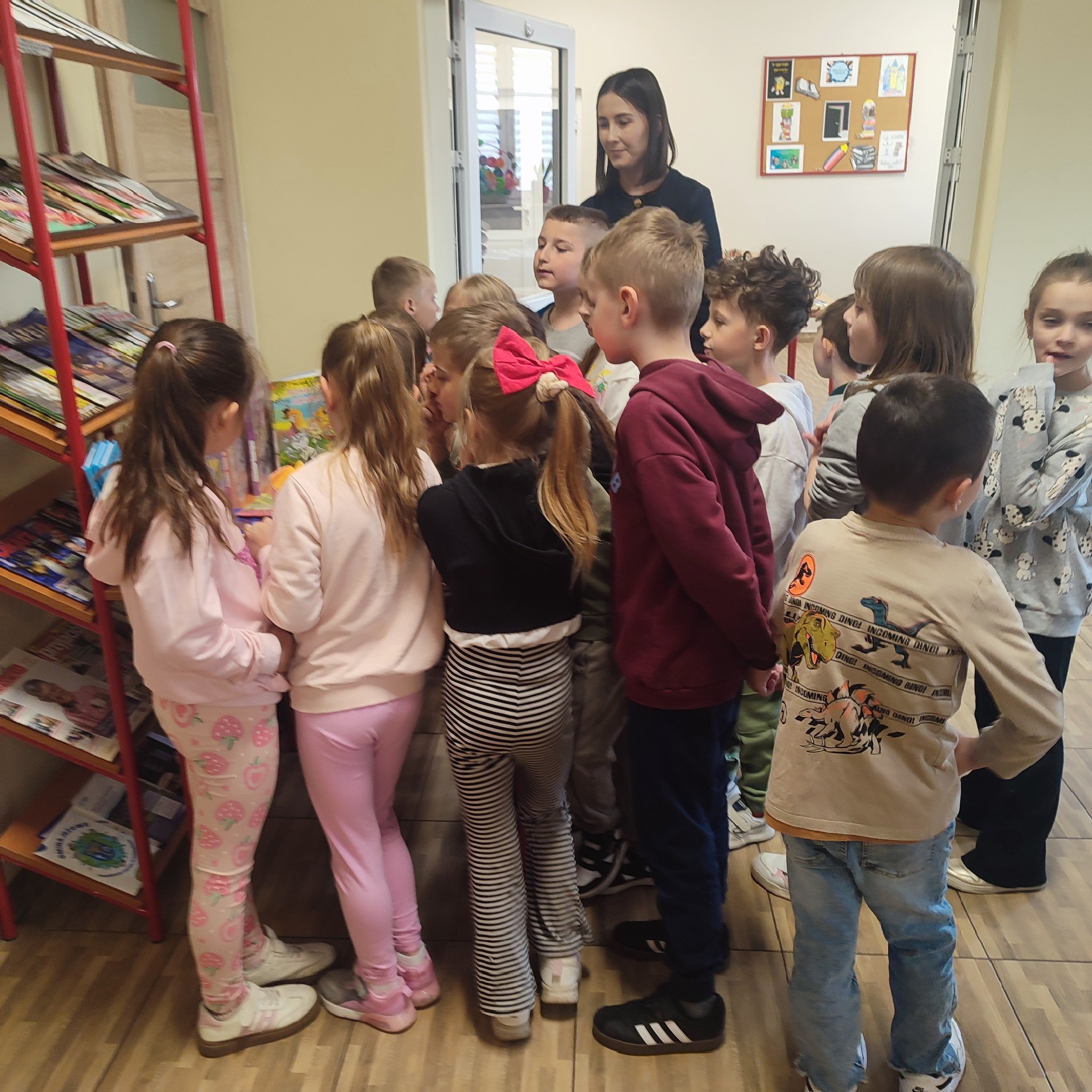 W poniedziałek naszą bibliotekę odwiedziła klasa 1 z Publicznej Szkoły Podstawowej w Groblach wraz z wychowawczynią panią Karoliną Wraga oraz panią Bożeną Drzymała.