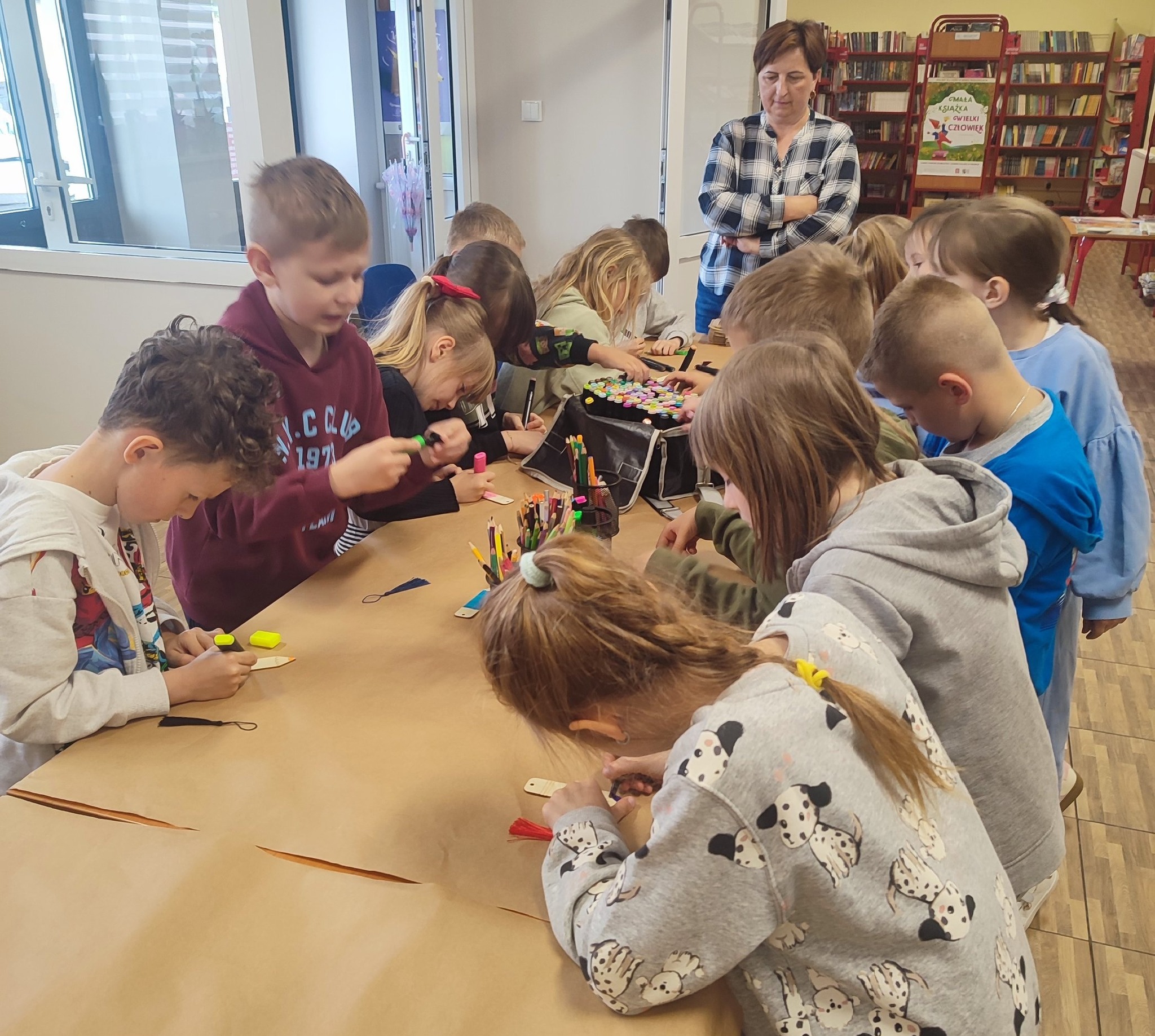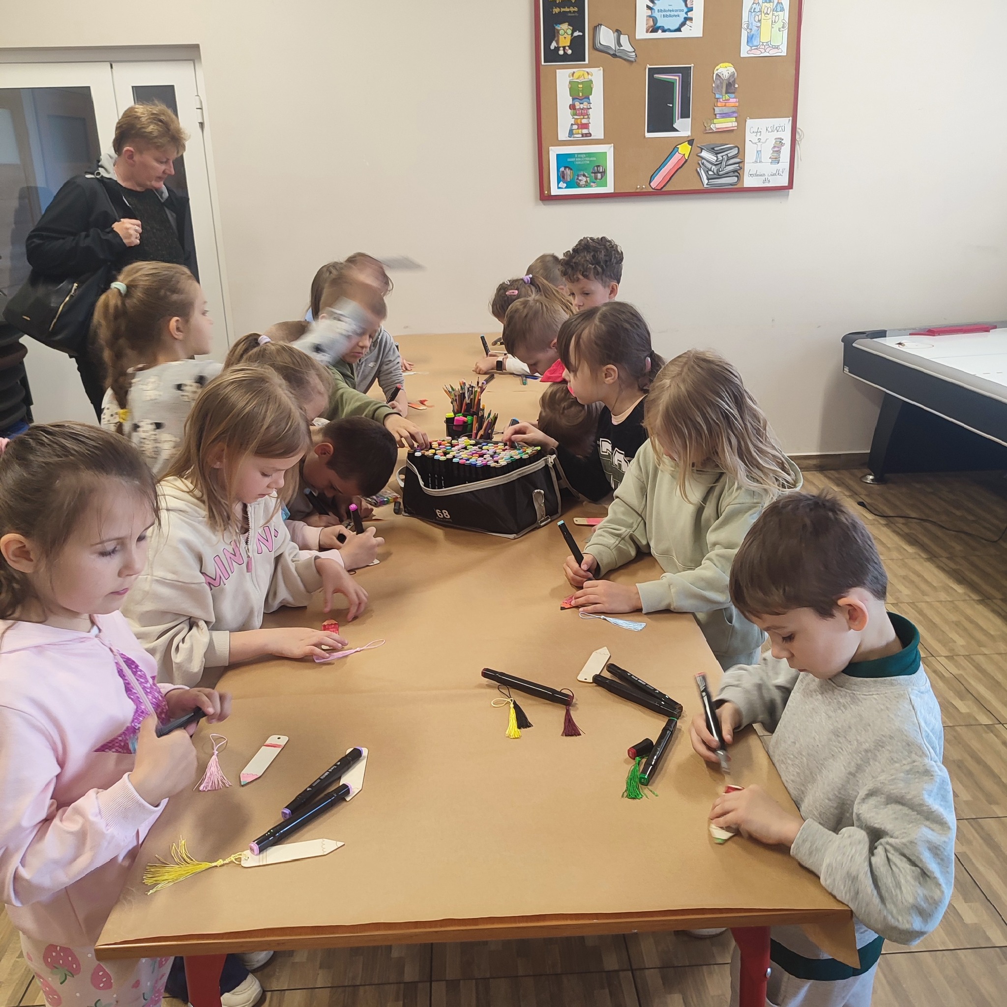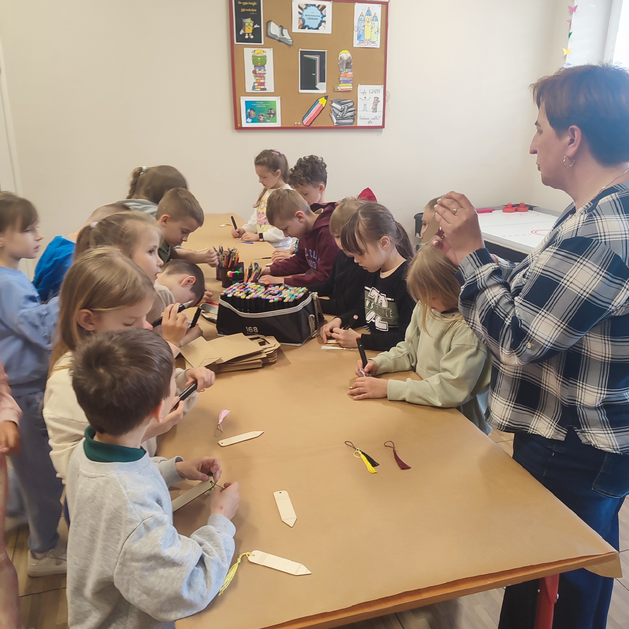 W trakcie pobytu dzieci wysłuchały kilku wierszy o książkach oraz wykonały śliczne zakładki do książek.
