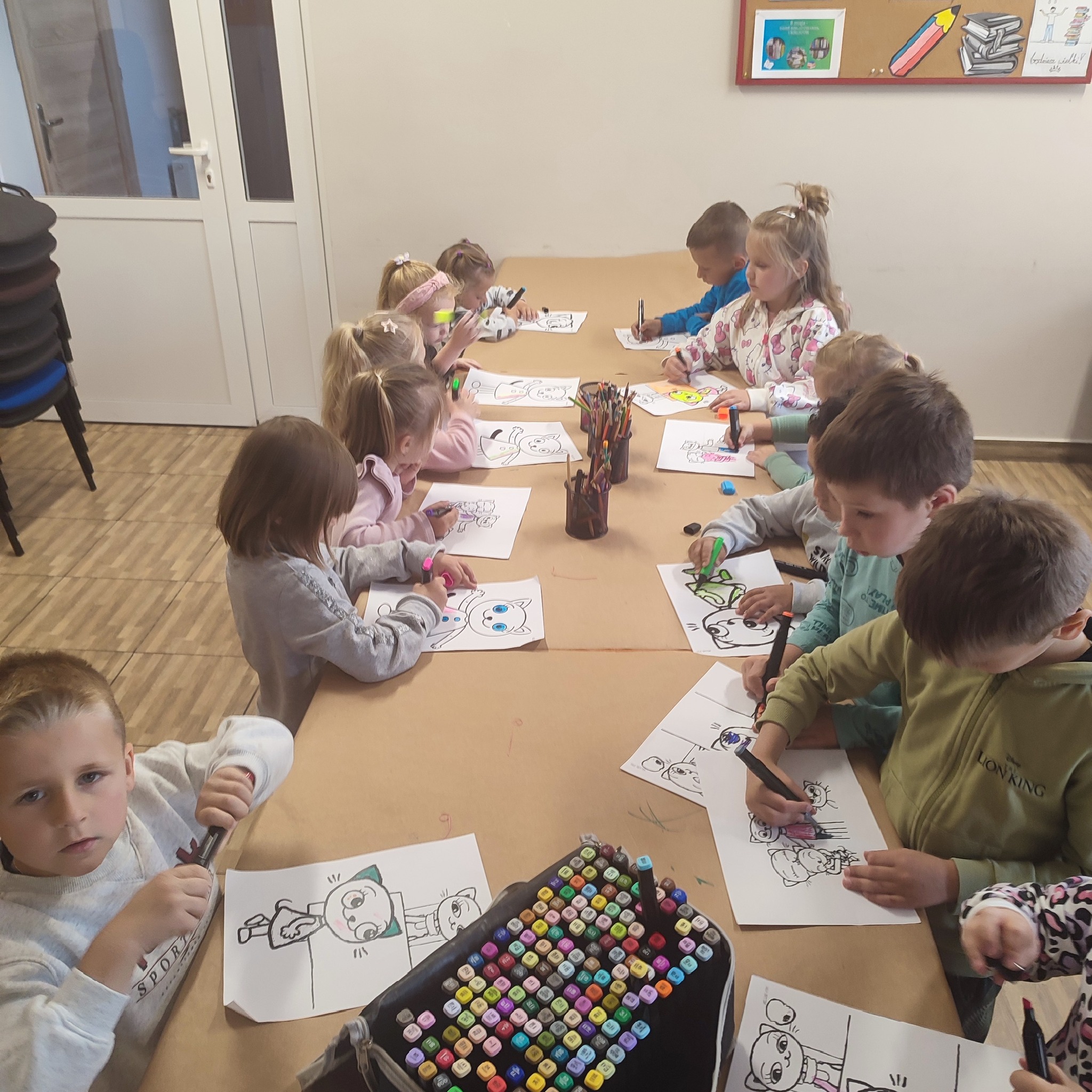 Przedszkolaki wysłuchały także opowieści o przygodach Kici koci oraz pokolorowały obrazki.