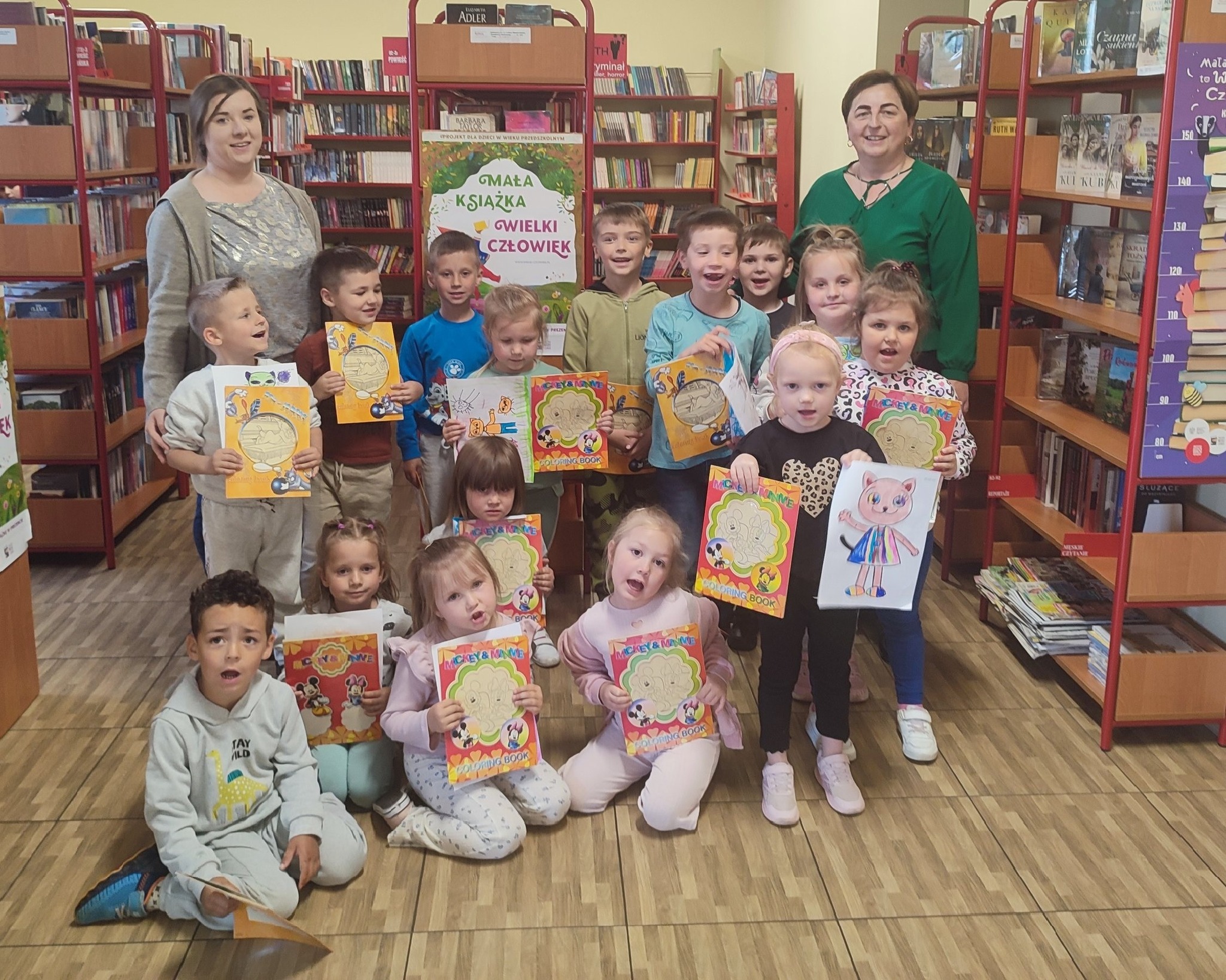 Dzielna grupa przedszkolaków zobaczyła jakiego rodzaju niezwykłe książki można znaleźć na bibliotecznych półkach. Sprawdziły czy najgrubsza książka jest tak ciężka, na jaką wygląda oraz jak duże różnice są między największą a najmniejszą książką.