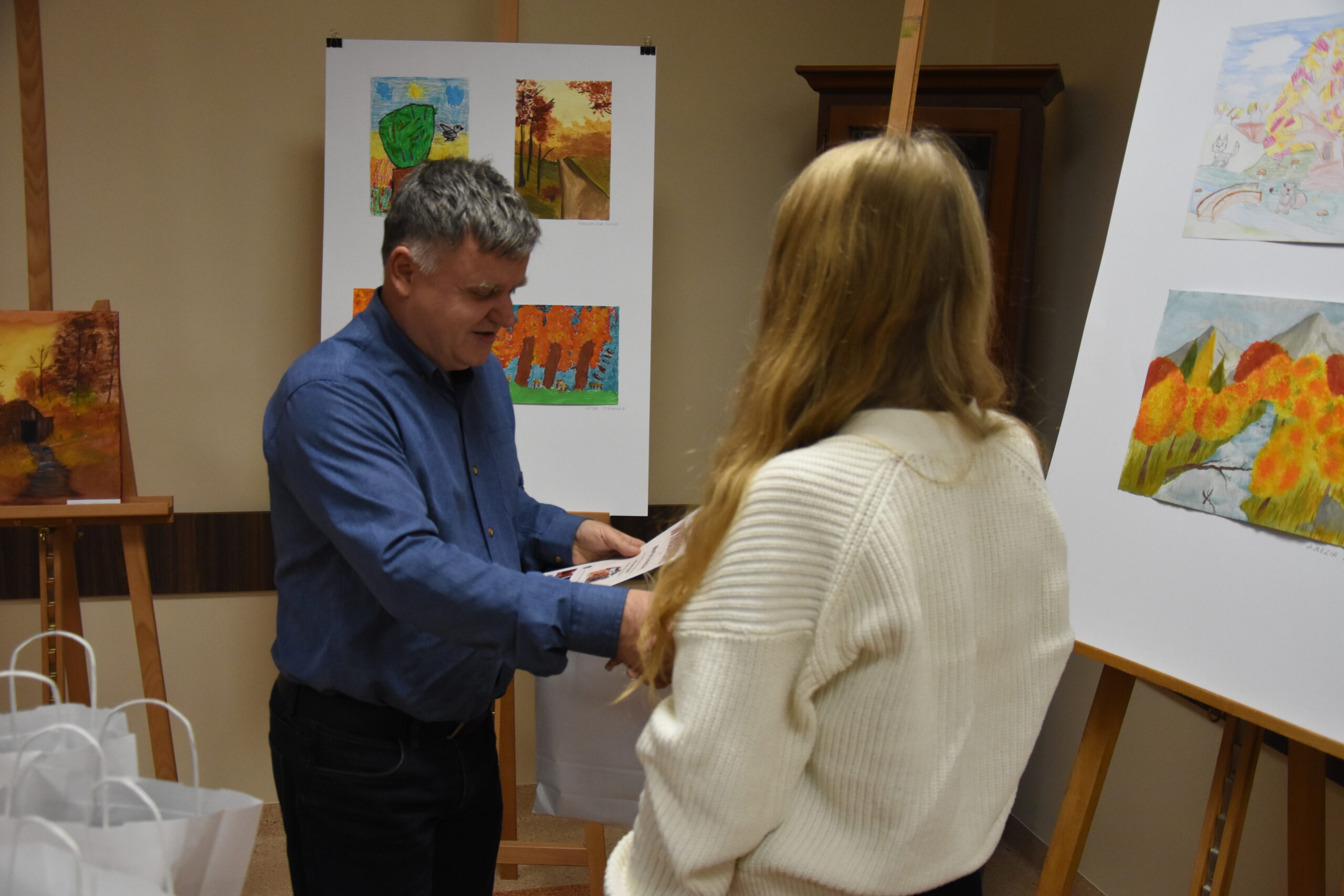 📢Dnia 4 grudnia w Gminnym Centrum Kultury odbyło się wręczenie nagród i dyplomów w Amatorskim Konkursie Fotograficznym „Nasza Gmina Jesienią” 📸🍁🍂🍁Patronat nad konkursem objął Wójt Gminy Jeżowe – Marek Stępak. Do konkursu zgłosiło się 15 uczestników. Zbigniew Bednarz – Dyrektor Gminnego Centrum Kultury w Jeżowem po powitaniu gości przystąpił do nagrodzenia zwycięzców.
