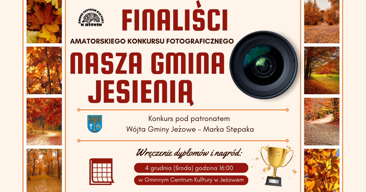 📢 Dyrektor Gminnego Centrum Kultury w Jeżowem - Zbigniew Bednarz ogłasza finalistów Amatorskiego Konkursu Fotograficznego pn. „Nasza Gmina Jesienią” 📸🍂🍁