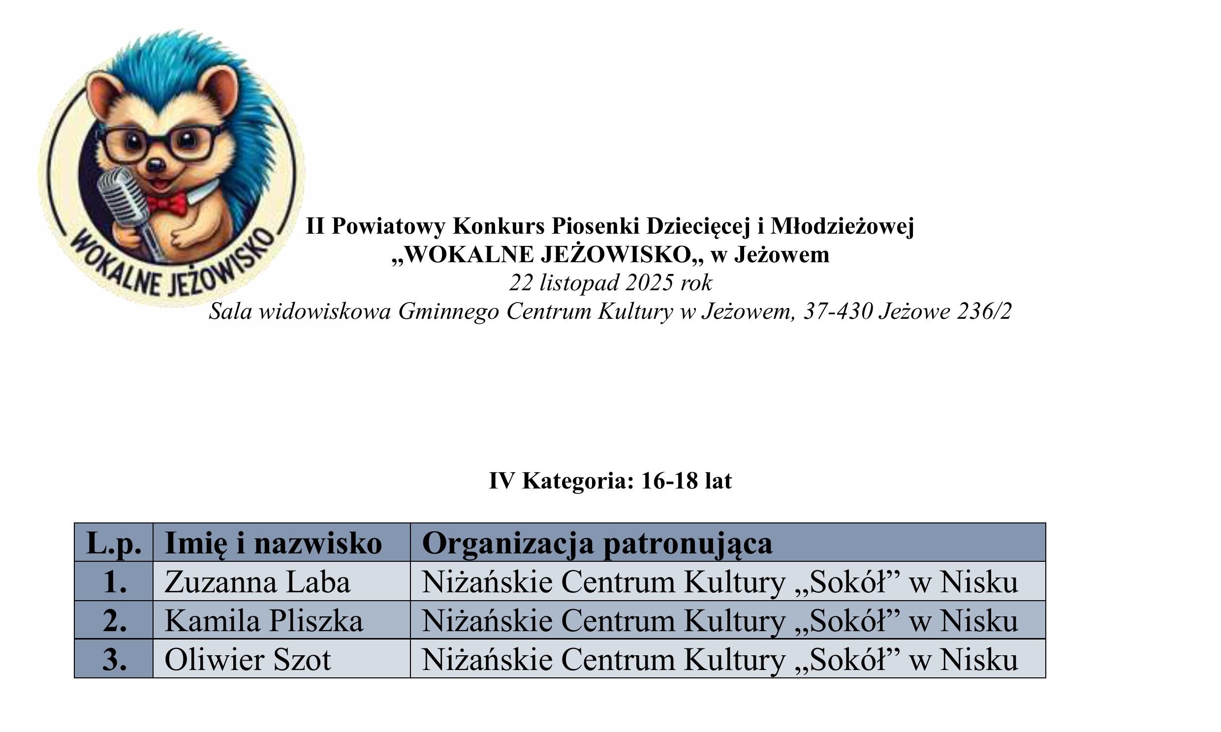📌 Tytuł przelewu: „Wokalne Jeżowisko” + imię i nazwisko uczestnika