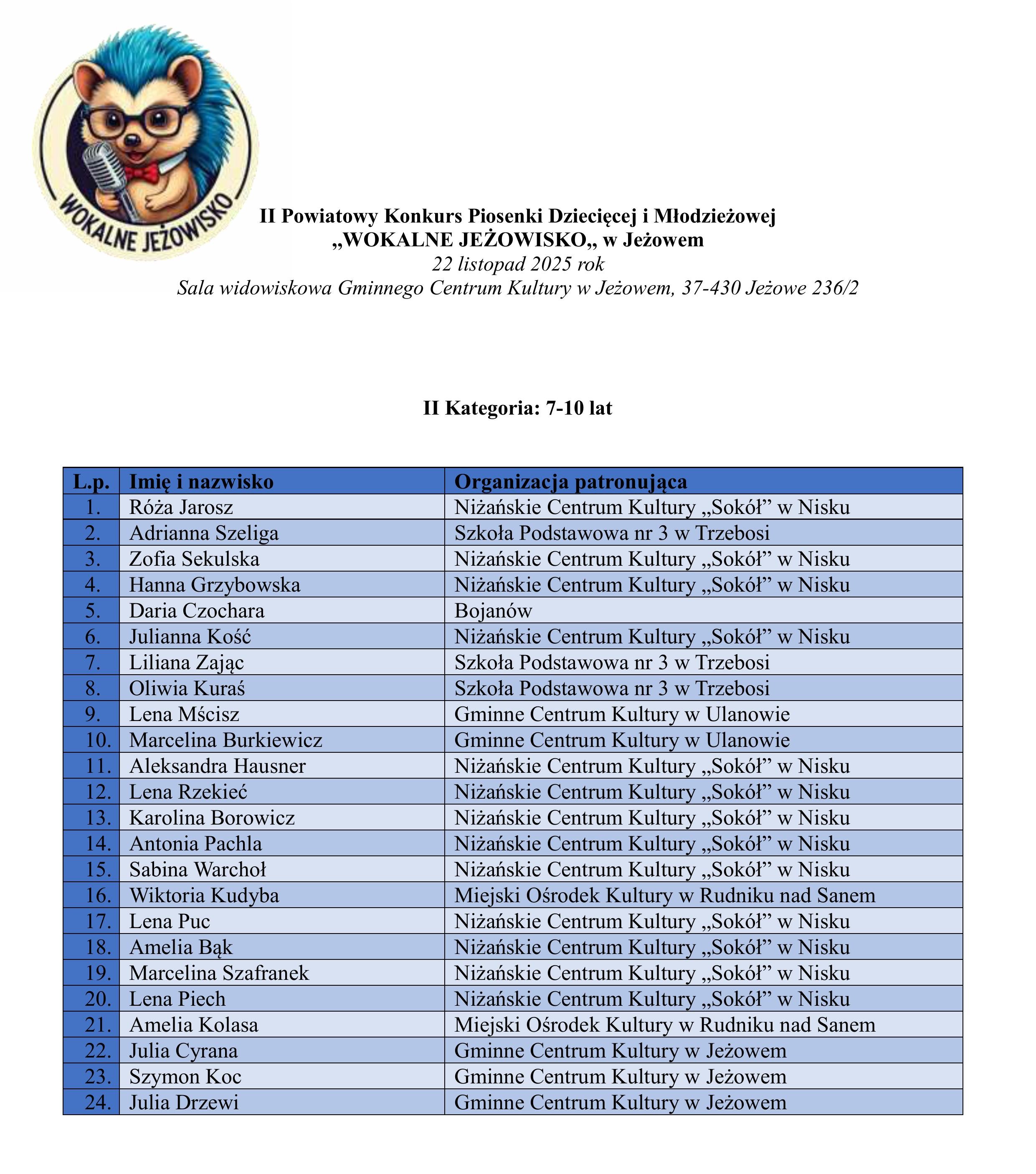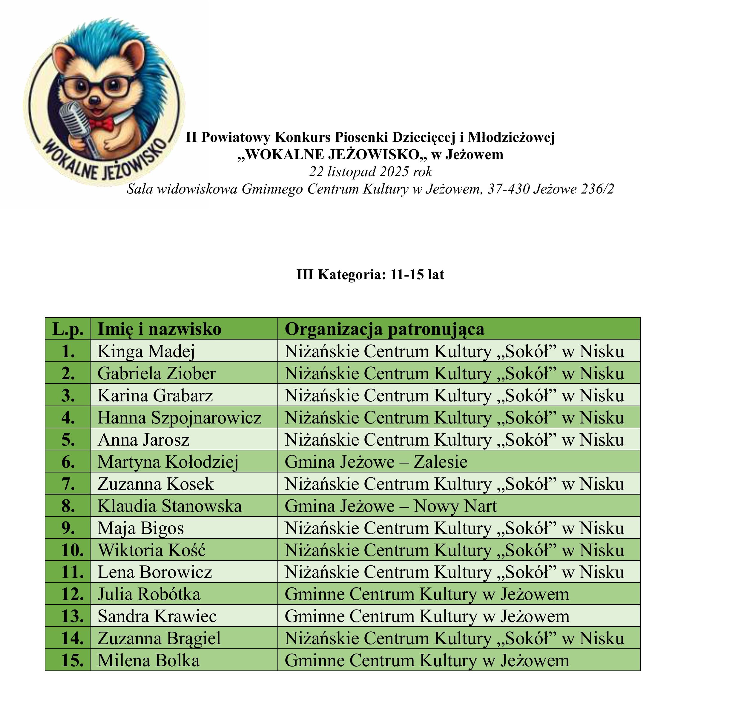 🎤 Przedstawiamy Finalistów II Powiatowego Konkursu Piosenki Dziecięcej i Młodzieżowej „Wokalne Jeżowisko” w Jeżowem! 🎶🌟