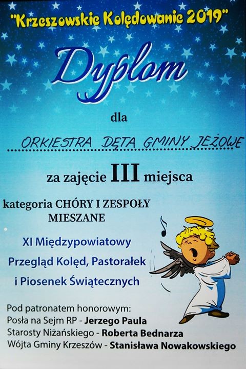W dniu 20 stycznia 2019 r. Orkiestra Dęta Gminy Jeżowe brała udział w XI Międzypowiatomym Przeglądzie Kolęd, Pastorałek i Piosenek Świątecznych. Orkiestra pod kierownictwem Kapelmistrza Pana Krystiana Maruta zajęła III miejsce w kategorii chóry i zespoły mieszane.
