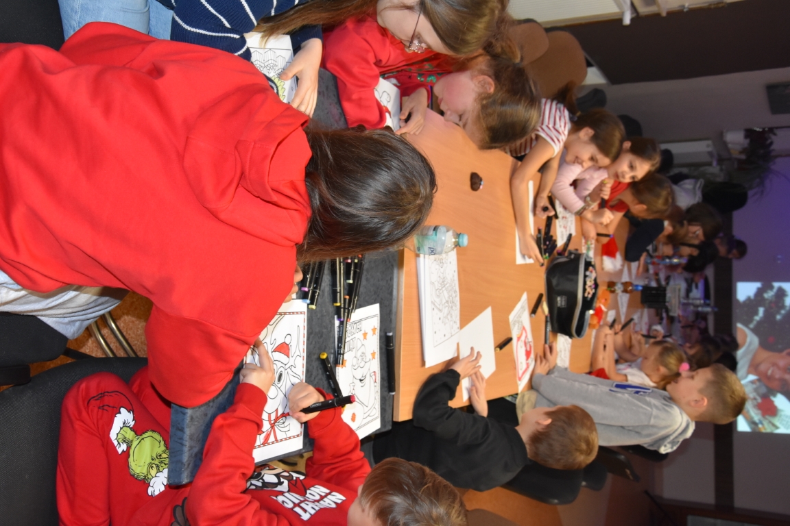 Najmłodsi mogli spróbować swoich sił w wykrajaniu, pieczeniu i dekorowaniu pierniczków 🍪✨, korzystając z kolorowych lukrów i posypek, które zamieniały każde ciasteczko w małe dzieło sztuki. Nie zabrakło także świątecznych kolorowanek 🖍️, kreatywnych konkursów z nagrodami 🎁 oraz świątecznego seansu bajkowego, który przeniósł dzieci w magiczny świat pełen przygód i zimowych czarów 📽️🌟.