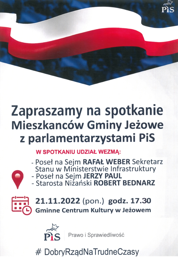 Zapraszamy Mieszkańców Gminy Jeżowe na spotkanie z parlamentarzystami PIS