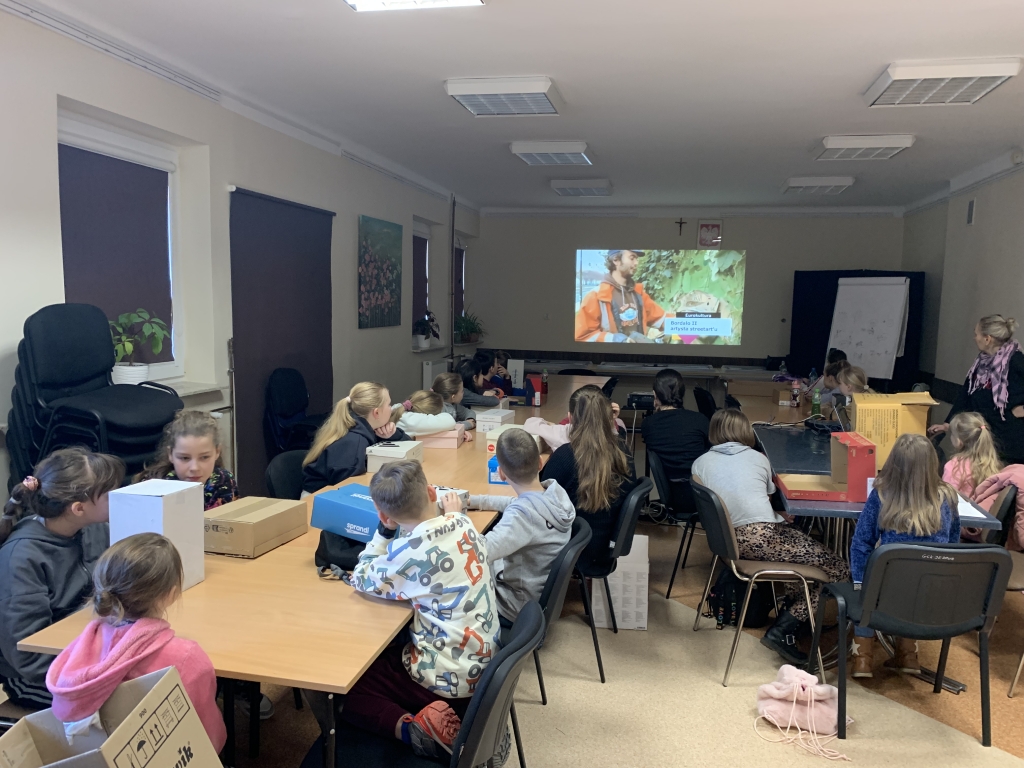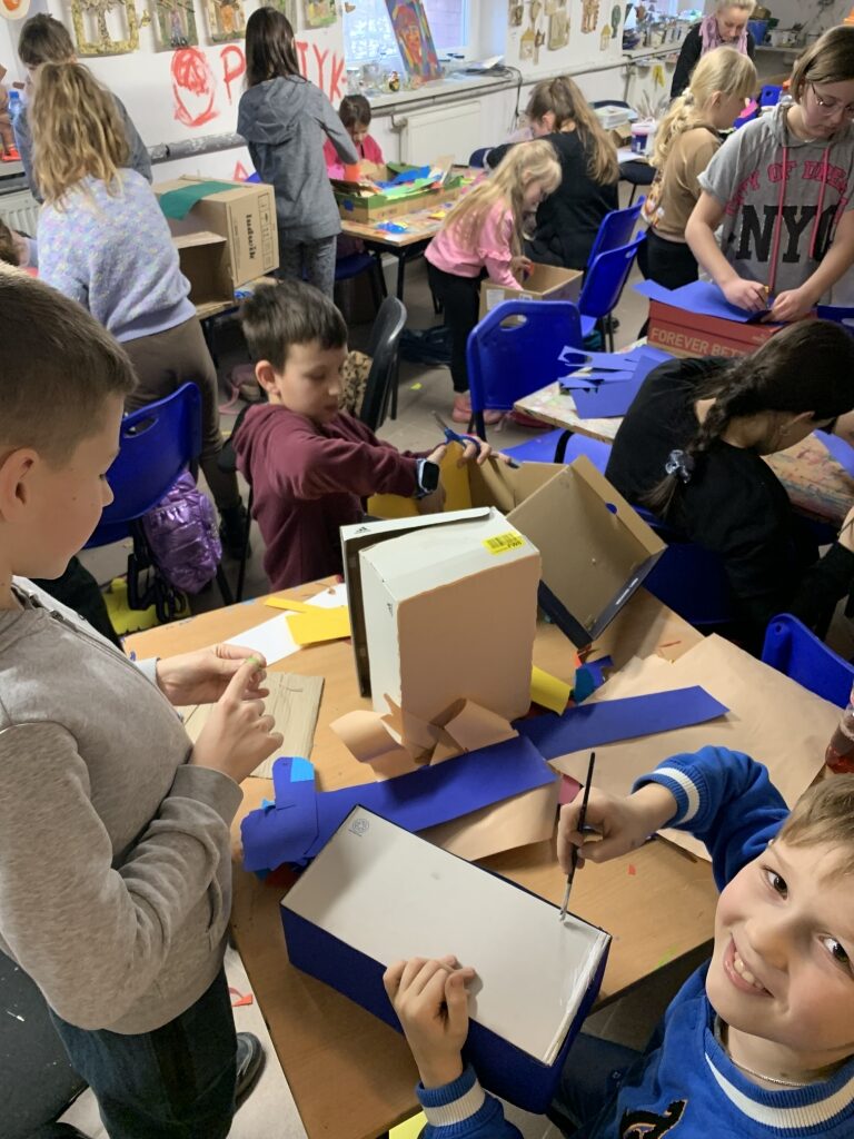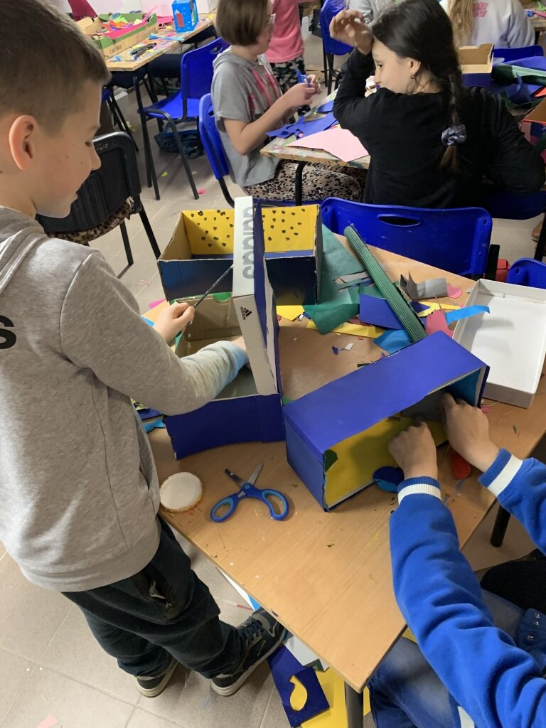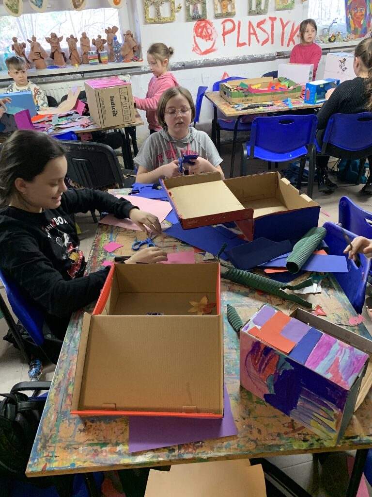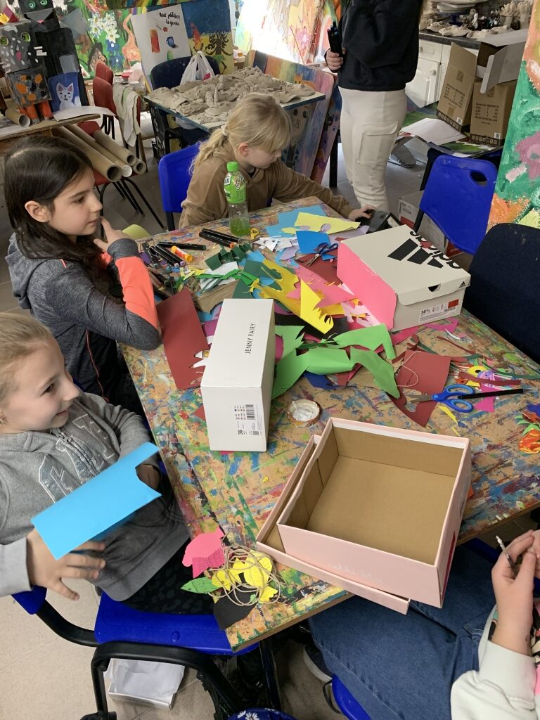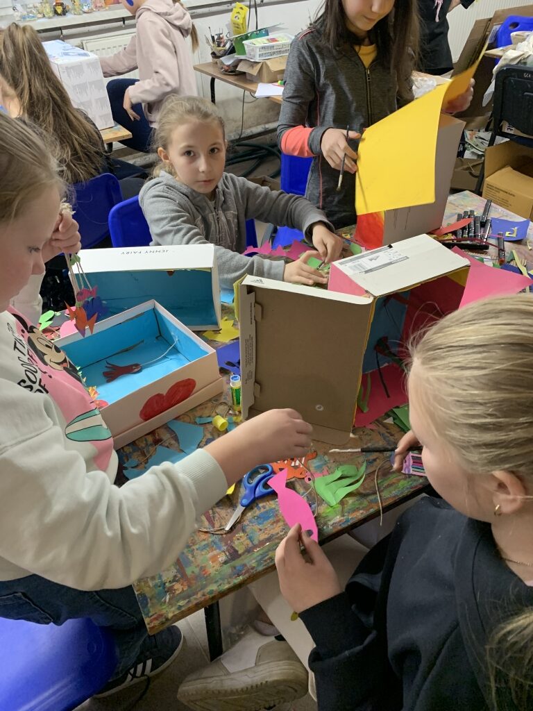 📣 W drugim dniu zajęć feryjnych, zorganizowanych przez nasz dom kultury, dzieci miały okazję wziąć udział w fascynujących warsztatach z recyklingu. Zajęcia rozpoczęły się od seansu, podczas którego uczestnicy zapoznali się z różnorodnymi formami, jakie można nadać przedmiotom z odzyskanych materiałów. Film pokazał, jak kreatywnie wykorzystać rzeczy, które już zostały przez nas uznane za niepotrzebne, przekształcając je w nowe, użyteczne lub artystyczne przedmioty. Po seansie, dzieci miały za zadanie wykonać swoje własne projekty. Z pomocą materiałów takich jak kartony po obuwiu, kolorowy papier, i sznurek stworzyły przepiękne akwaria, które były efektem ich pomysłowości i zaangażowania. Każde dziecko stworzyło unikalne dzieło, pełne kolorów i fantazyjnych detali.