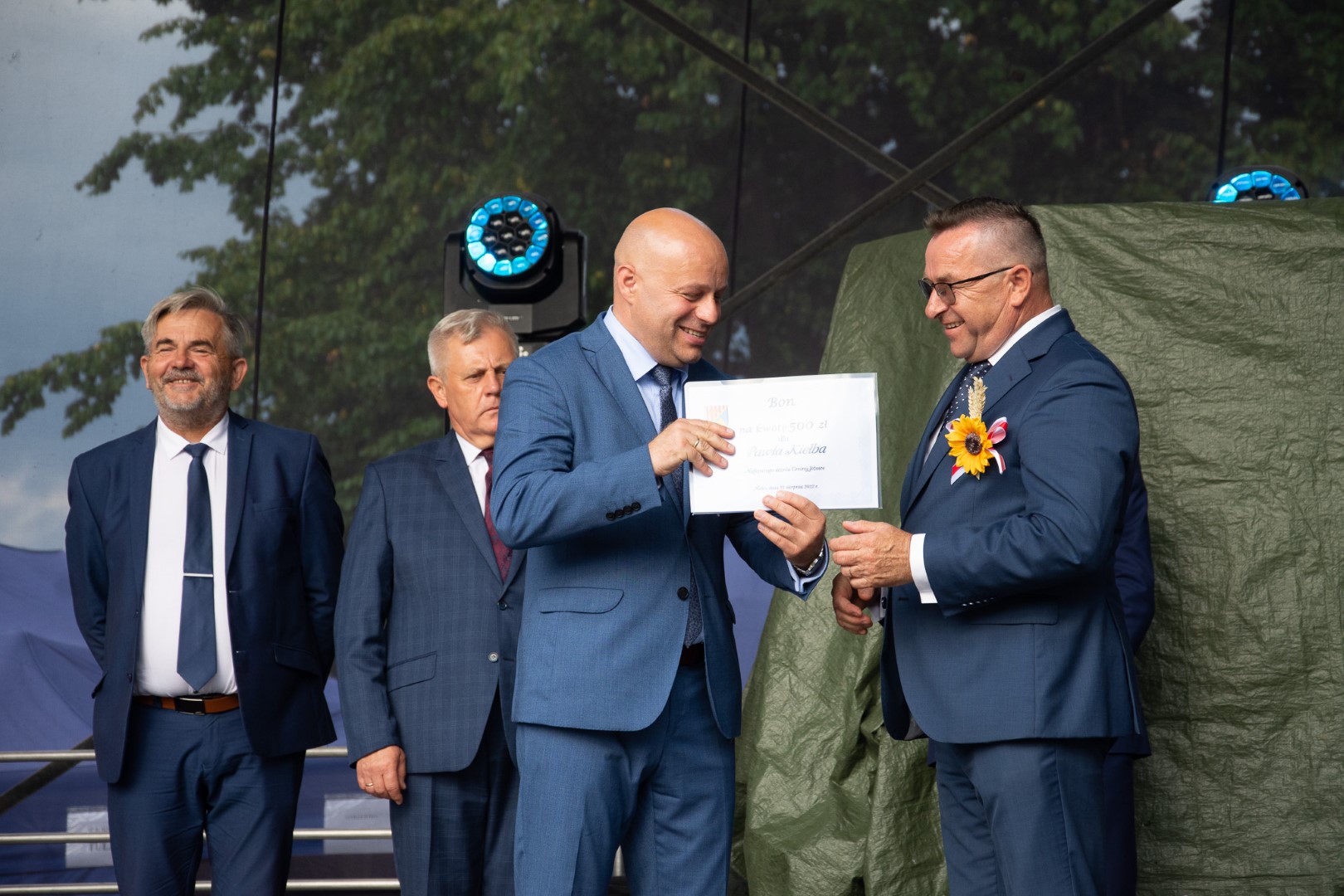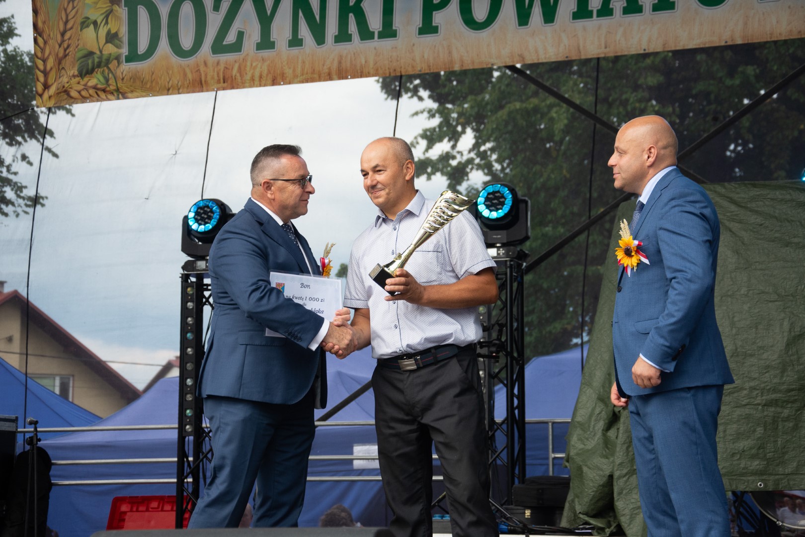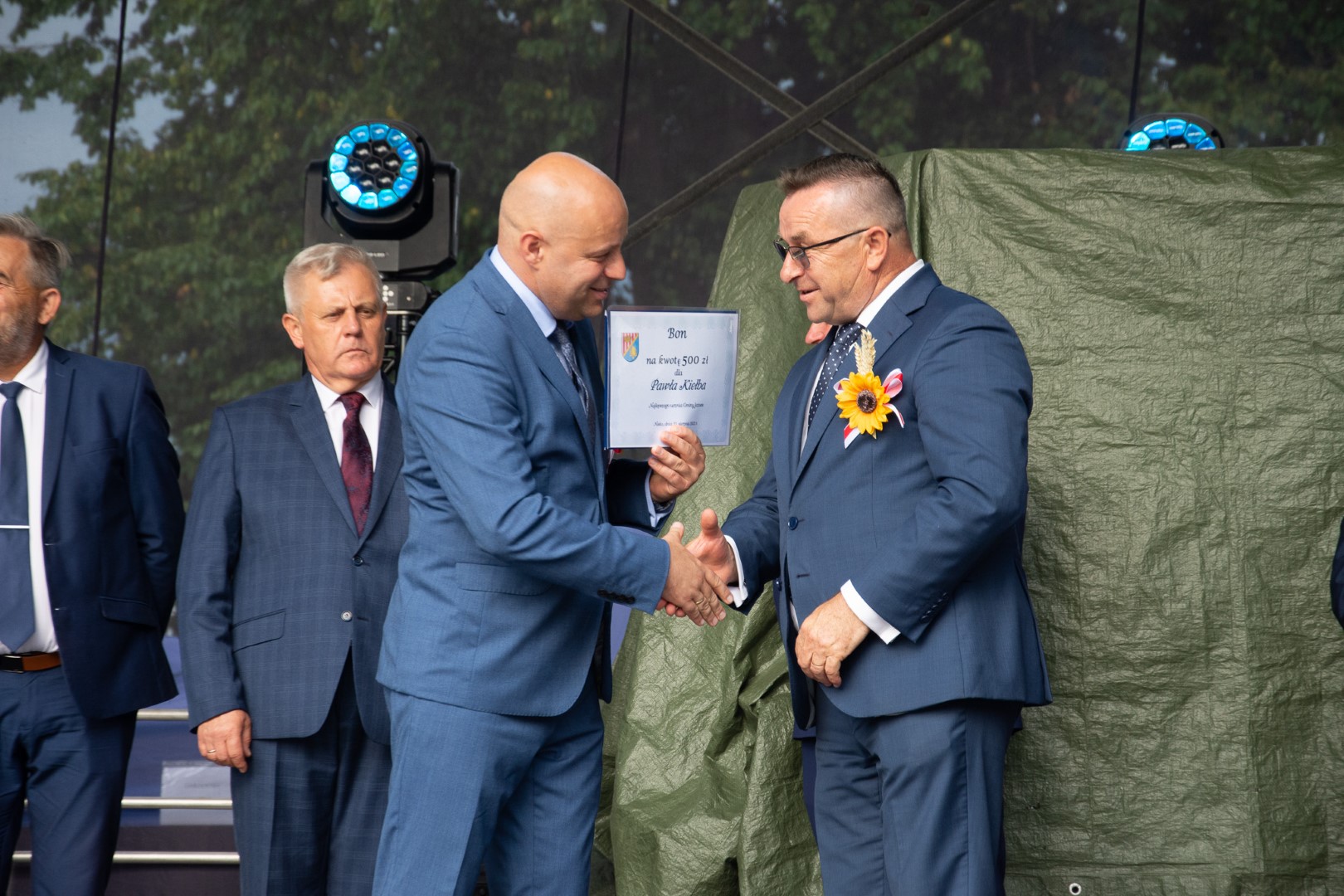 Najlepszym rolnikiem z terenu naszej gminy został Pan Józef Rychlak, który posiada swoje gospodarstwo rolne w Podgórzu i zajmuje się hodowlą bydła, a najlepszym uczniem Paweł Kiełb z Samorządowej Szkoły Muzycznej z Jeżowego za wybitne osiągniecia w konkursach muzycznych o randze międzynarodowej. Nagrodzeni otrzymali pamiątkowe statuetki od Starosty Powiatu Niżańskiego Roberta Bednarz a nagrody pieniężne ufundował Wójt Gminy Jeżowe Marek Stępak. Gratulacje. W części artystycznej zaprezentowała się niezawodna Kapela Ludowa Jeżowianie. Podczas 20 minutowego koncertu zespół zaprezentował kilka znanych z płyty utworów oraz kilka nowo opracowanych aranżacji. Dziękujemy za piękny koncert.