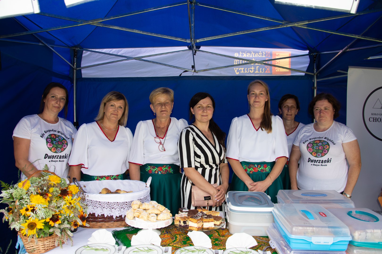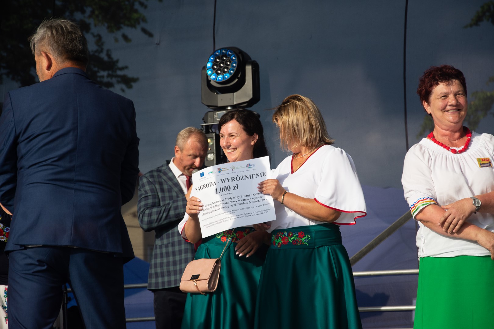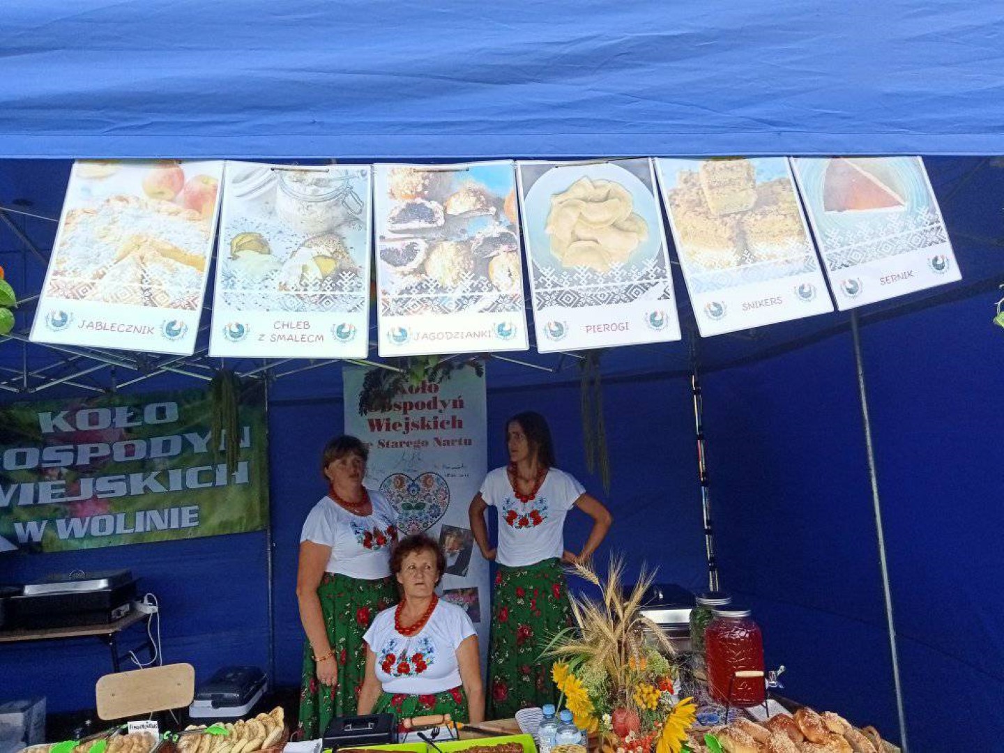 W konkursie kulinarnym wzięły udział dwa koła gospodyń wiejskich: KGW Dworzanki z Nowego Nartu i KGW Cholewianki z Cholewianej Góry, które zajęły pierwsze miejsce w konkursie zdobywając nagrodę pieniężną o wartości 1600 zł. Gratulujemy. W dożynkach wzięły udział także ze swoimi stoiskami dwa koła z naszej gminy: KGW ze Starego Nartu i KGW Zalesianki z Zalesia. Stoisko promocyjne gminy Jeżowe przygotowali pracownicy GCK Jeżowe.