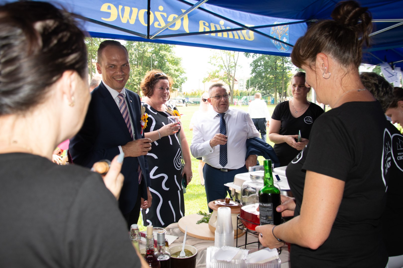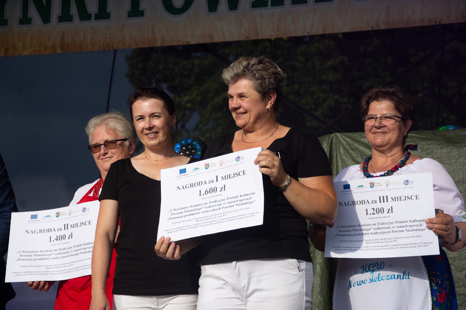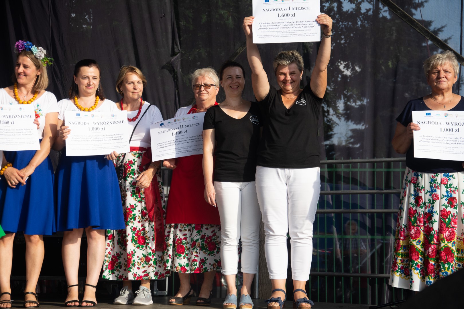 W konkursie kulinarnym wzięły udział dwa koła gospodyń wiejskich: KGW Dworzanki z Nowego Nartu i KGW Cholewianki z Cholewianej Góry, które zajęły pierwsze miejsce w konkursie zdobywając nagrodę pieniężną o wartości 1600 zł. Gratulujemy. W dożynkach wzięły udział także ze swoimi stoiskami dwa koła z naszej gminy: KGW ze Starego Nartu i KGW Zalesianki z Zalesia. Stoisko promocyjne gminy Jeżowe przygotowali pracownicy GCK Jeżowe.