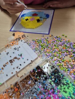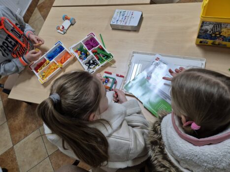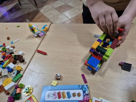 ➡Wśród nowości, które wzbogacają propozycje zajęć, warto wyróżnić klocki Lego Education. Te innowacyjne zestawy zostały zakupione dzięki dofinansowaniu w ramach programu „Kraszewski. Komputery dla bibliotek”. Lego Education to nie tylko zabawa, ale również edukacja, która pozwala dzieciom w ciekawy sposób rozwijać umiejętności konstrukcyjne, techniczne oraz rozwiązywania problemów. Klocki te stanowią doskonałe narzędzie wspierające rozwój dzieci w zakresie STEM (nauka, technologia, inżynieria, matematyka).