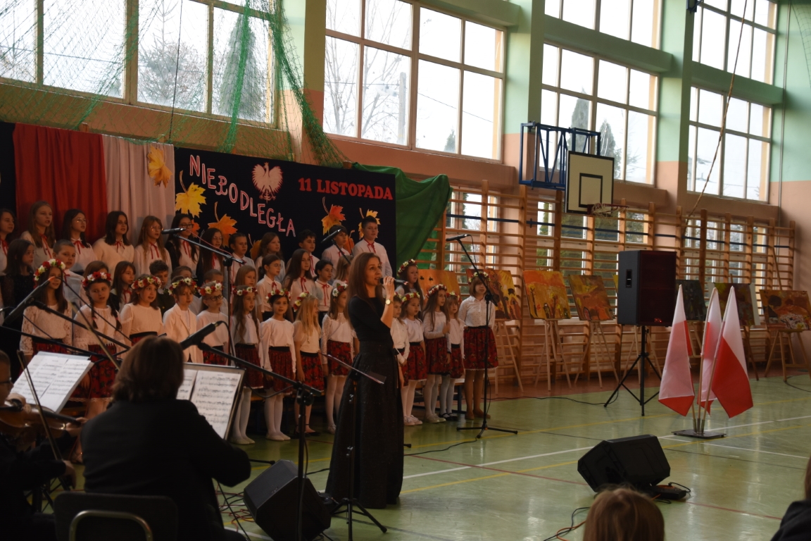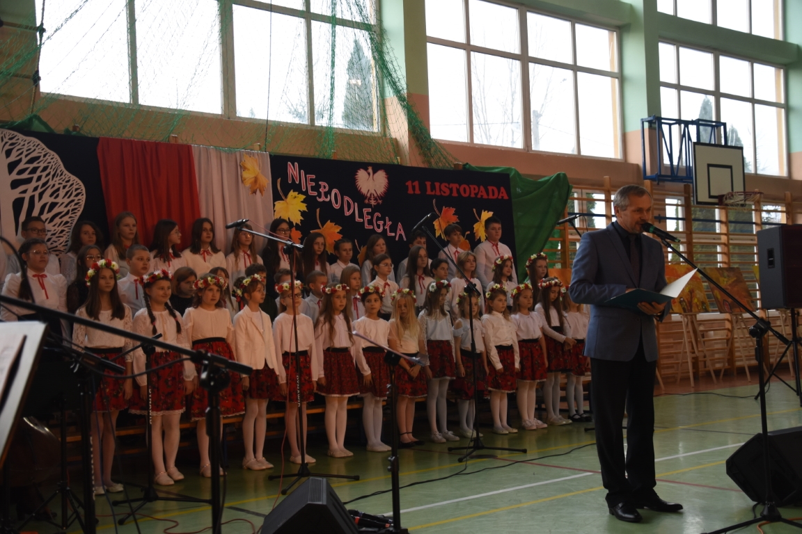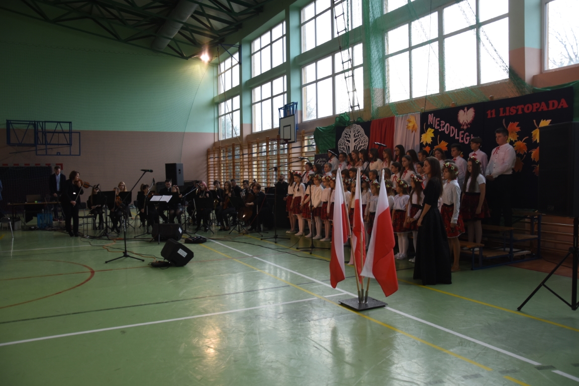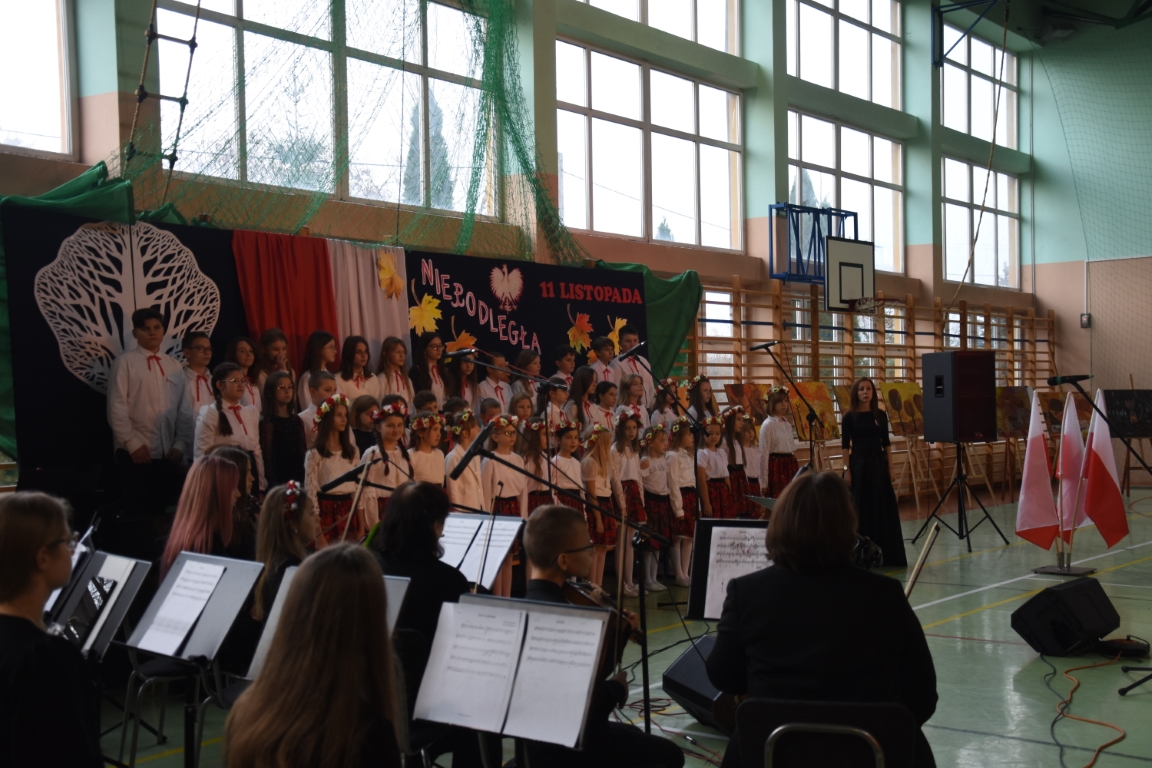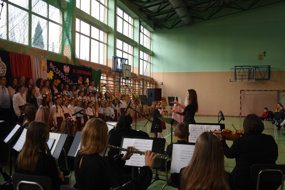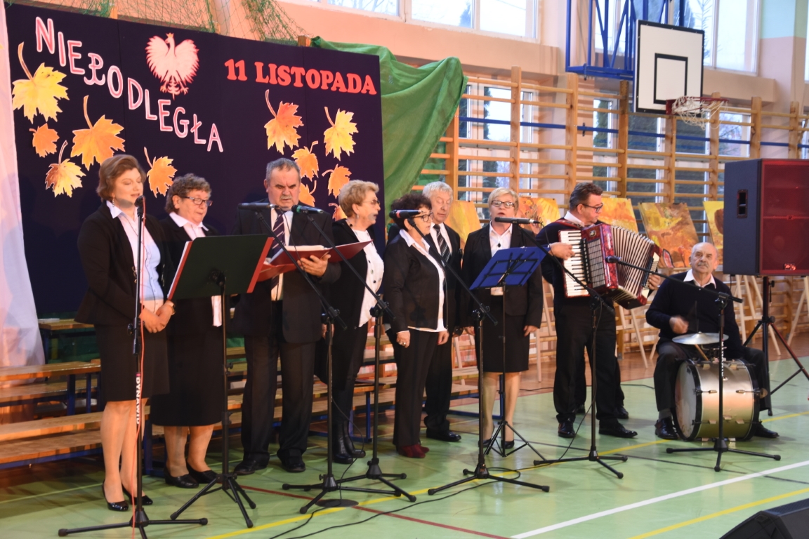 Tegoroczny Dzień Niepodległości w naszej gminie wypełniony był przede wszystkim śpiewem i muzyką. Pierwszą część obchodów, zorganizowaną w budynku Samorządowej Szkoły Muzycznej, stanowił koncert patriotyczny w wykonaniu orkiestry i chóru Samorządowej Szkoły Muzycznej w Jeżowem oraz zespołów związanych z Gminnym Centrum Kultury – grupy wokalnej, zespołu śpiewaczego „Jeżowianie” oraz kapeli ludowej „Jeżowianie”. Tego popołudnia usłyszeliśmy najpiękniejsze polskie pieśni i piosenki patriotyczne, w których śpiew włączała się także licznie zgromadzona publiczność. W roli gospodarza imprezy wystąpił dyrektor SSM, pan Marek Sękiel, zaś do przybyłych gości słowo końcowe skierował Wójt Gminy Jeżowe, pan Marek Stępak.
