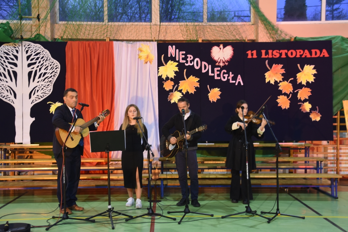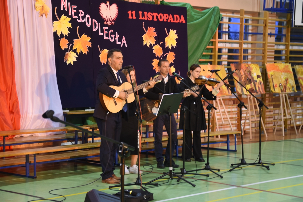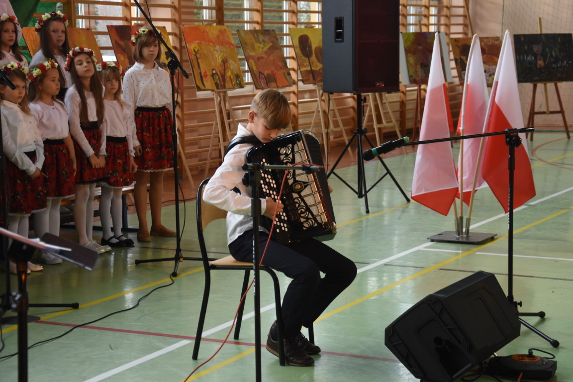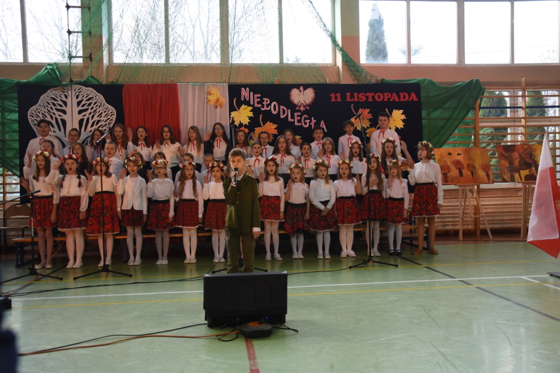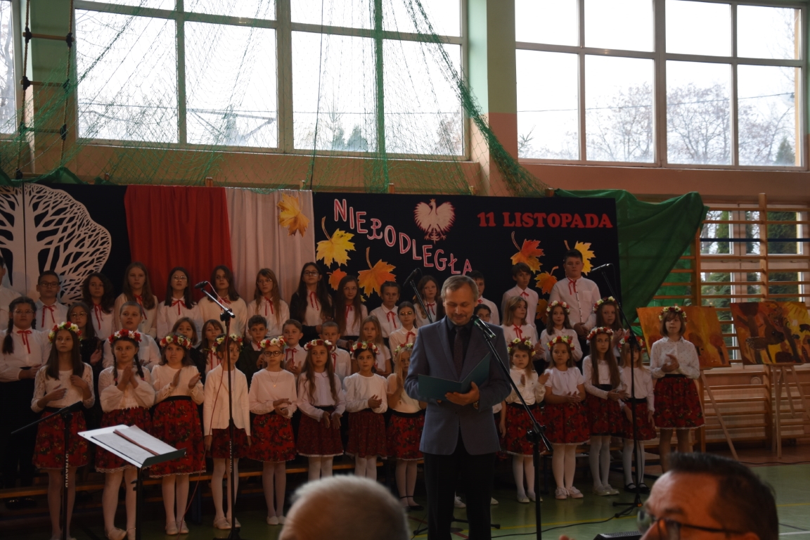 Tegoroczny Dzień Niepodległości w naszej gminie wypełniony był przede wszystkim śpiewem i muzyką. Pierwszą część obchodów, zorganizowaną w budynku Samorządowej Szkoły Muzycznej, stanowił koncert patriotyczny w wykonaniu orkiestry i chóru Samorządowej Szkoły Muzycznej w Jeżowem oraz zespołów związanych z Gminnym Centrum Kultury – grupy wokalnej, zespołu śpiewaczego „Jeżowianie” oraz kapeli ludowej „Jeżowianie”. Tego popołudnia usłyszeliśmy najpiękniejsze polskie pieśni i piosenki patriotyczne, w których śpiew włączała się także licznie zgromadzona publiczność. W roli gospodarza imprezy wystąpił dyrektor SSM, pan Marek Sękiel, zaś do przybyłych gości słowo końcowe skierował Wójt Gminy Jeżowe, pan Marek Stępak.