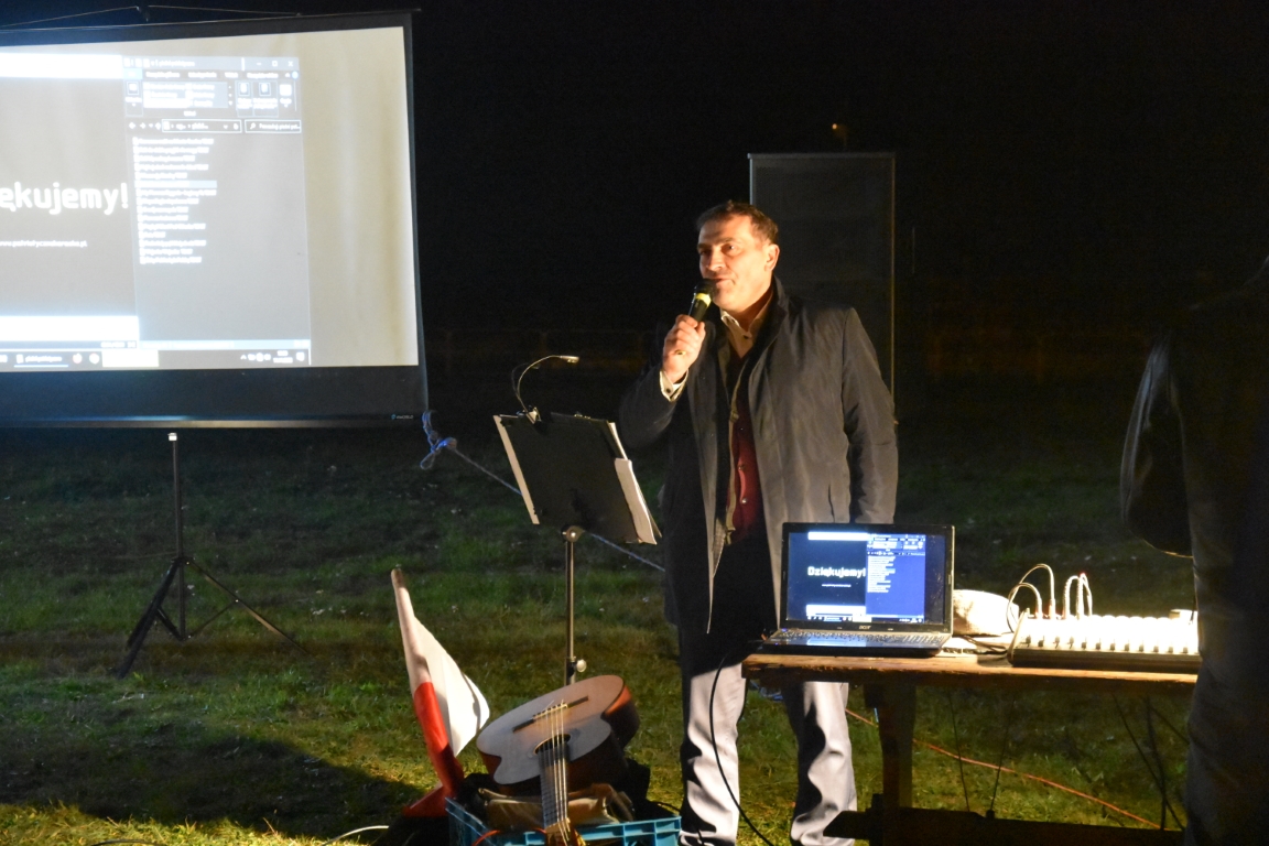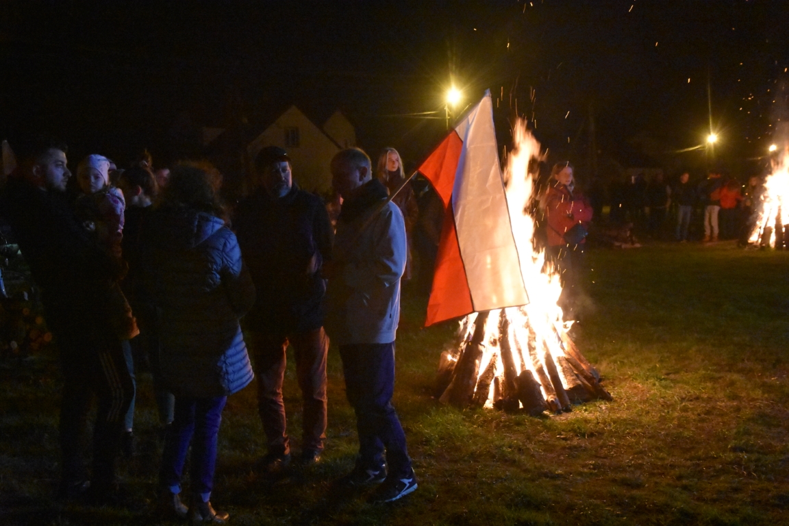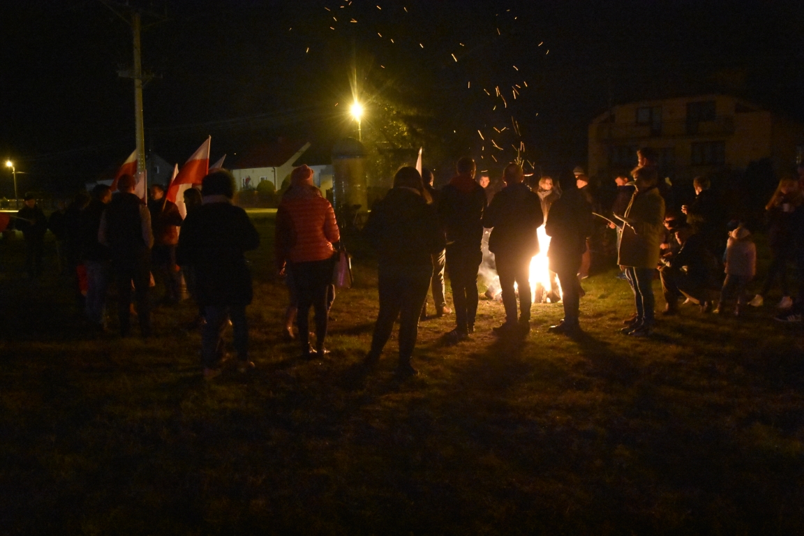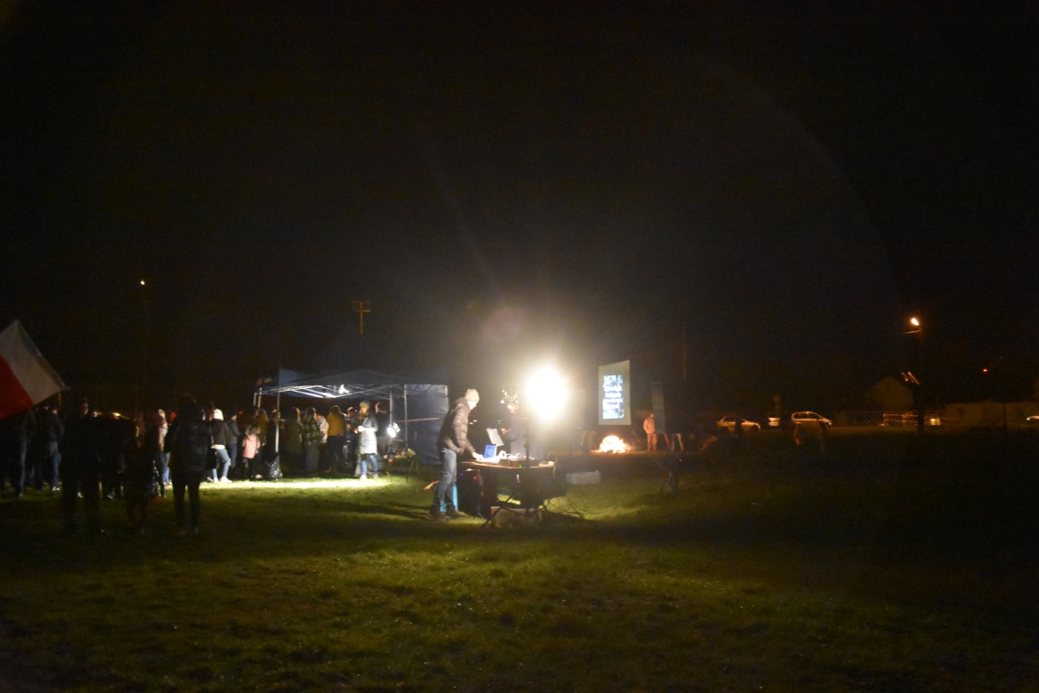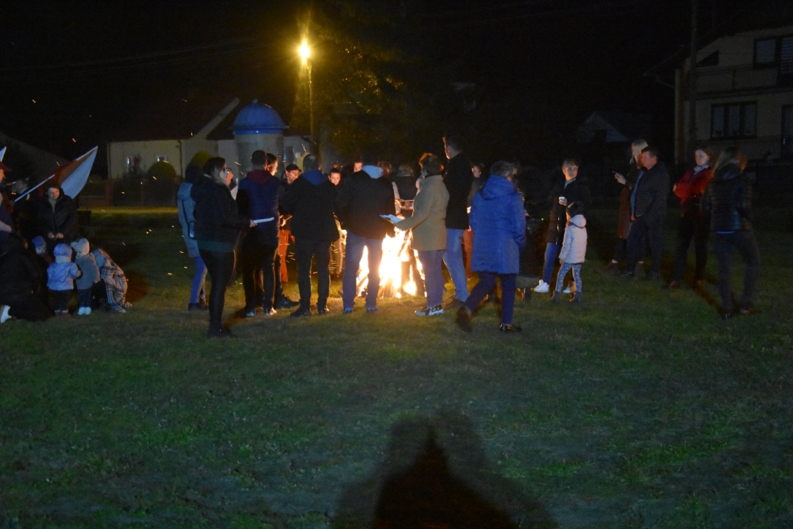 Ogromnym zainteresowaniem cieszyła się także druga część gminnego świętowania przy Ogniskach Niepodległości. Zapoczątkowana w 2018 roku tradycja plenerowego czuwania patriotycznego ze wspólnymi śpiewami umacnia się, rokrocznie gromadząc coraz większą liczbę nie tylko mieszkańców gminy, ale i gości z gmin okolicznych, przybywających na tę okazję z całymi rodzinami. Część plenerową, w oparciu o scenariusz autorstwa Krzysztofa Sochy, poprowadził pan Tadeusz Kopacz, który pokrótce przybliżył obecnym historię Odrodzonej Rzeczpospolitej oraz powstania najważniejszych utworów, składających się na śpiewnik każdego polskiego patrioty. Jeżowskie obchody Narodowego Święta Niepodległości zakończył efektowny pokaz fajerwerkowy.