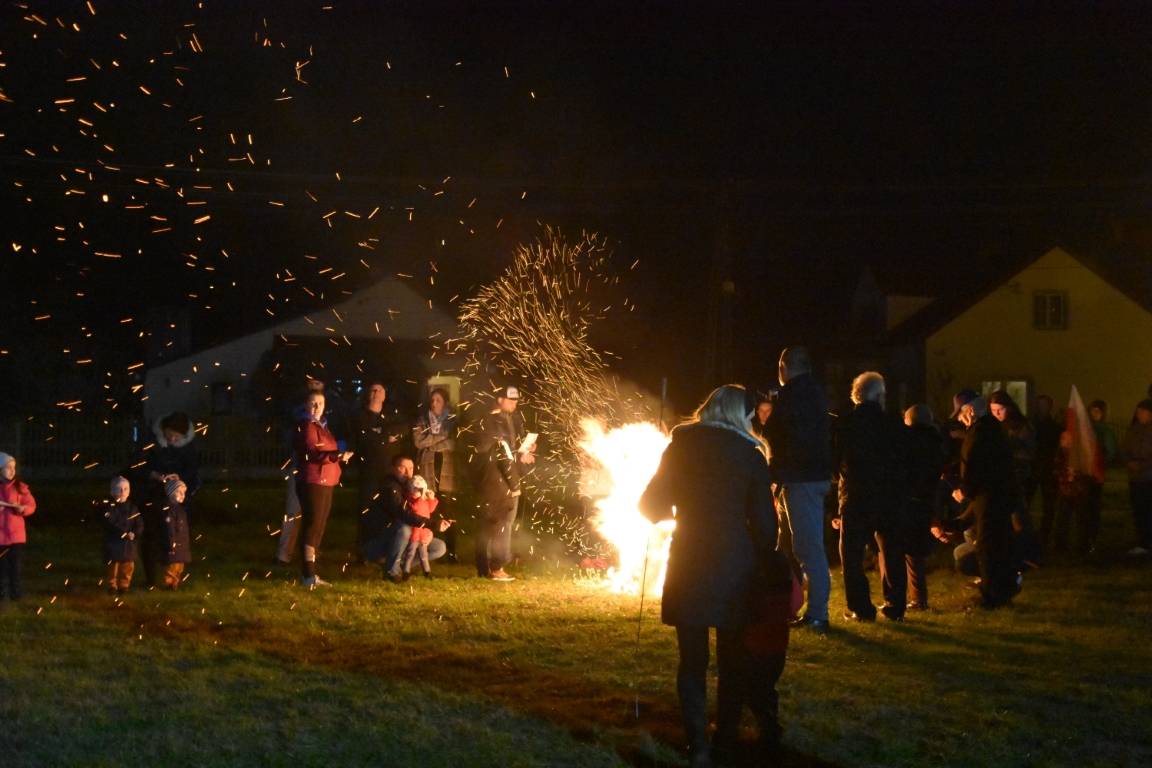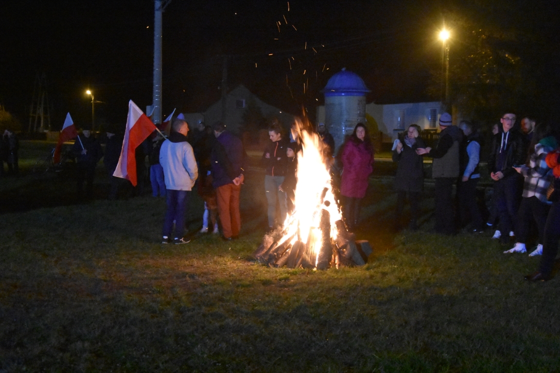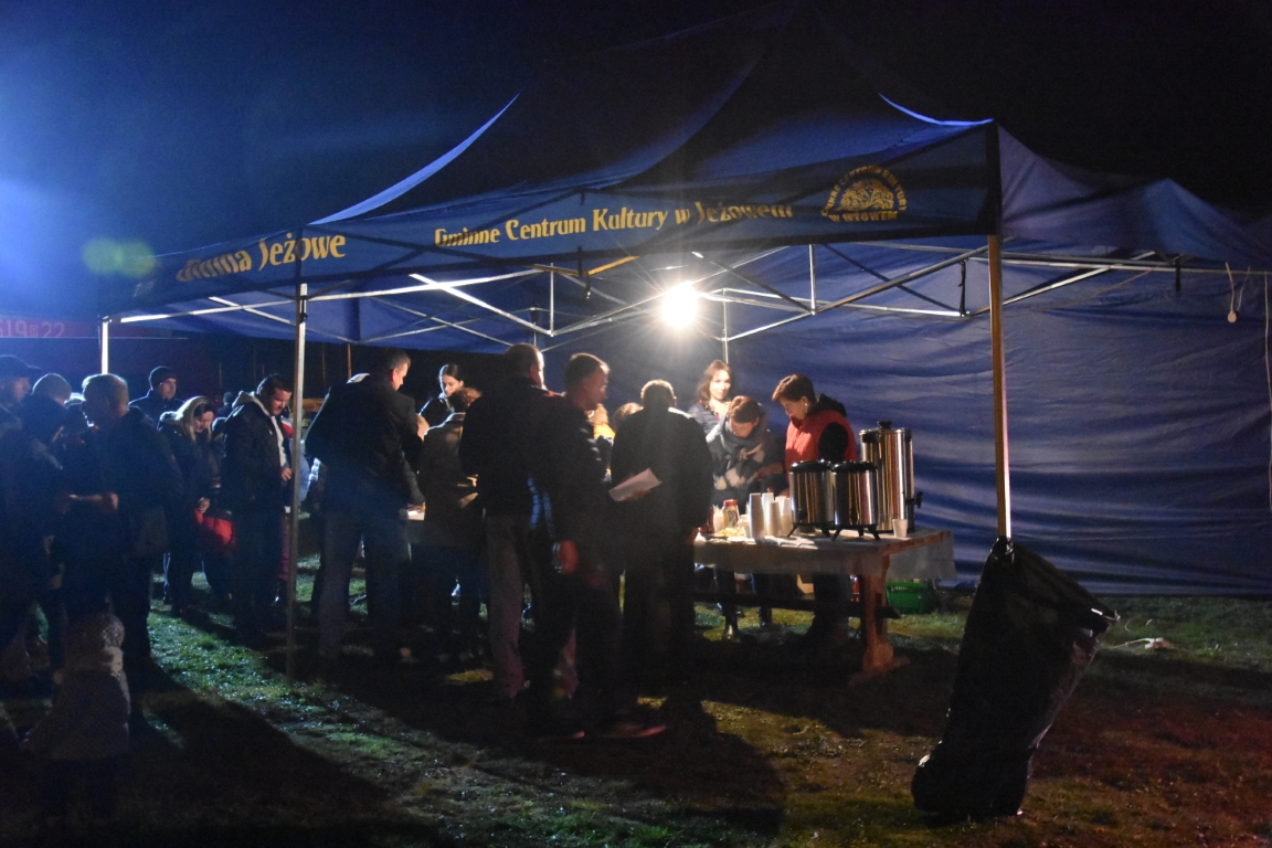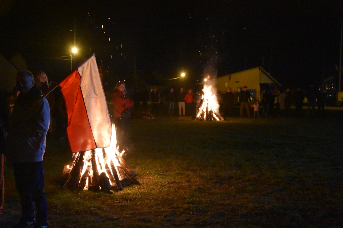 Ogromnym zainteresowaniem cieszyła się także druga część gminnego świętowania przy Ogniskach Niepodległości. Zapoczątkowana w 2018 roku tradycja plenerowego czuwania patriotycznego ze wspólnymi śpiewami umacnia się, rokrocznie gromadząc coraz większą liczbę nie tylko mieszkańców gminy, ale i gości z gmin okolicznych, przybywających na tę okazję z całymi rodzinami. Część plenerową, w oparciu o scenariusz autorstwa Krzysztofa Sochy, poprowadził pan Tadeusz Kopacz, który pokrótce przybliżył obecnym historię Odrodzonej Rzeczpospolitej oraz powstania najważniejszych utworów, składających się na śpiewnik każdego polskiego patrioty. Jeżowskie obchody Narodowego Święta Niepodległości zakończył efektowny pokaz fajerwerkowy.