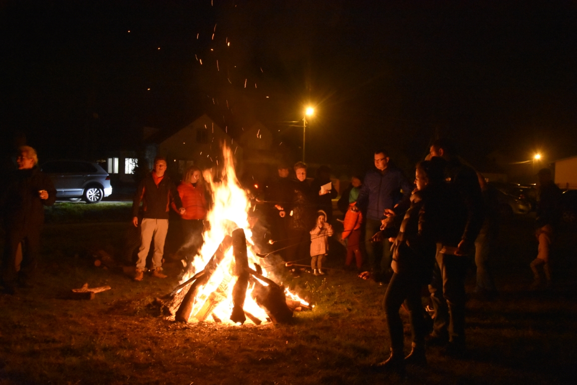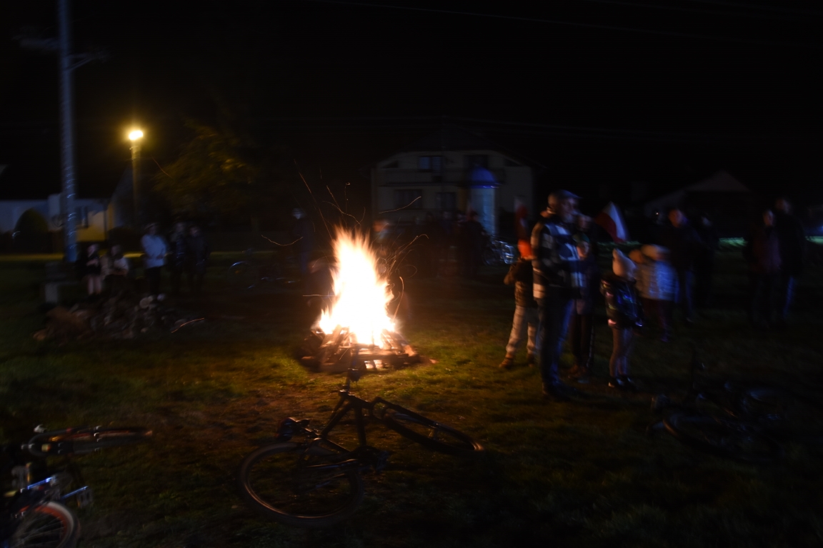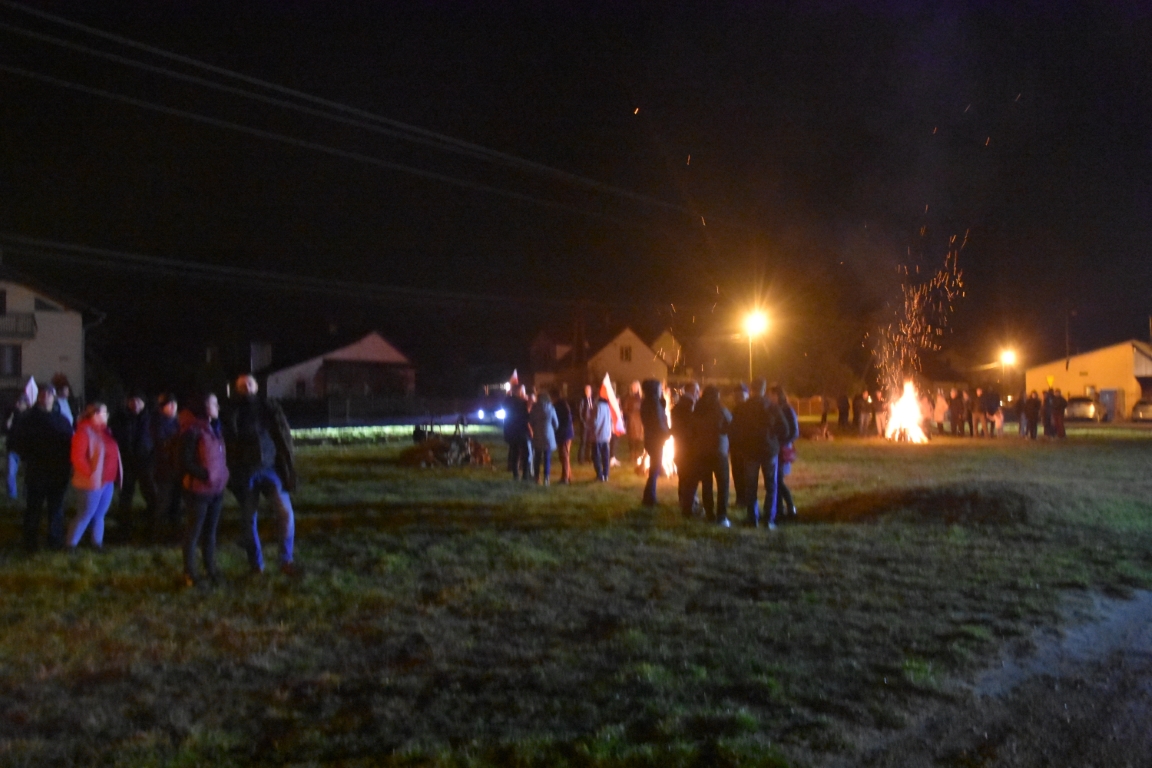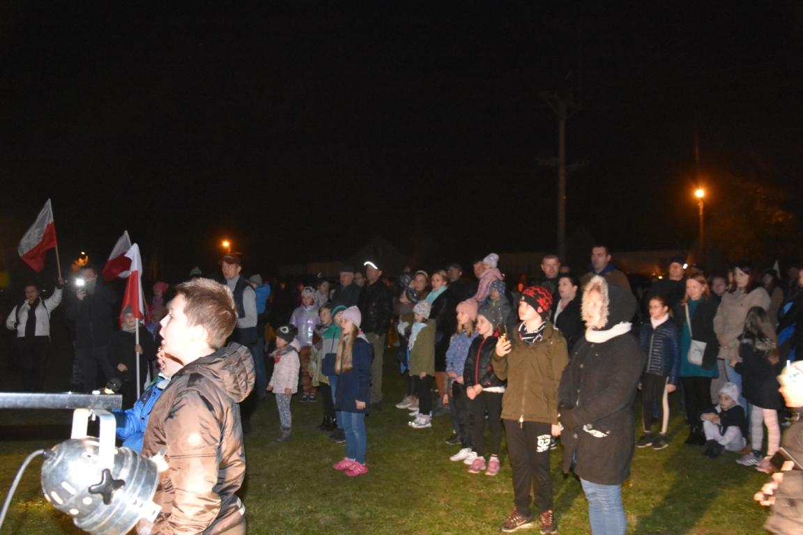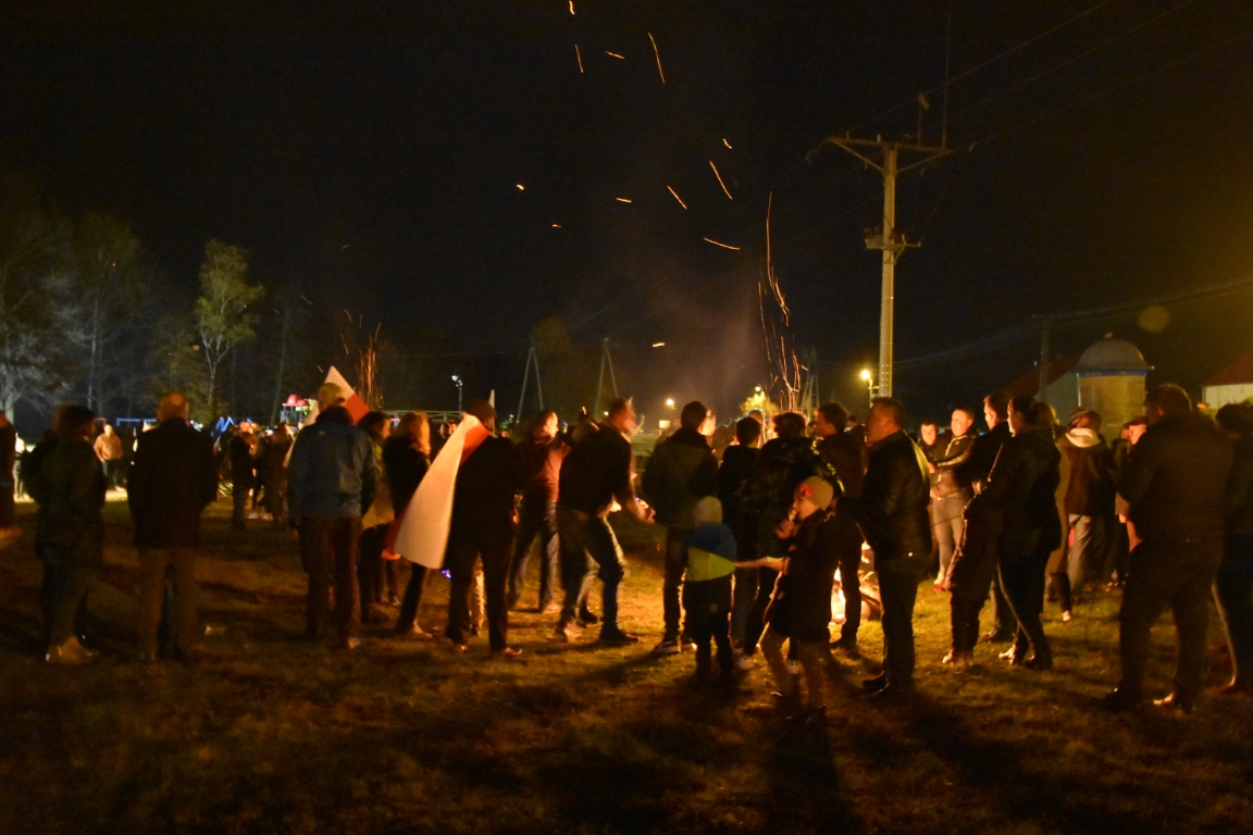 Ogromnym zainteresowaniem cieszyła się także druga część gminnego świętowania przy Ogniskach Niepodległości. Zapoczątkowana w 2018 roku tradycja plenerowego czuwania patriotycznego ze wspólnymi śpiewami umacnia się, rokrocznie gromadząc coraz większą liczbę nie tylko mieszkańców gminy, ale i gości z gmin okolicznych, przybywających na tę okazję z całymi rodzinami. Część plenerową, w oparciu o scenariusz autorstwa Krzysztofa Sochy, poprowadził pan Tadeusz Kopacz, który pokrótce przybliżył obecnym historię Odrodzonej Rzeczpospolitej oraz powstania najważniejszych utworów, składających się na śpiewnik każdego polskiego patrioty. Jeżowskie obchody Narodowego Święta Niepodległości zakończył efektowny pokaz fajerwerkowy.
