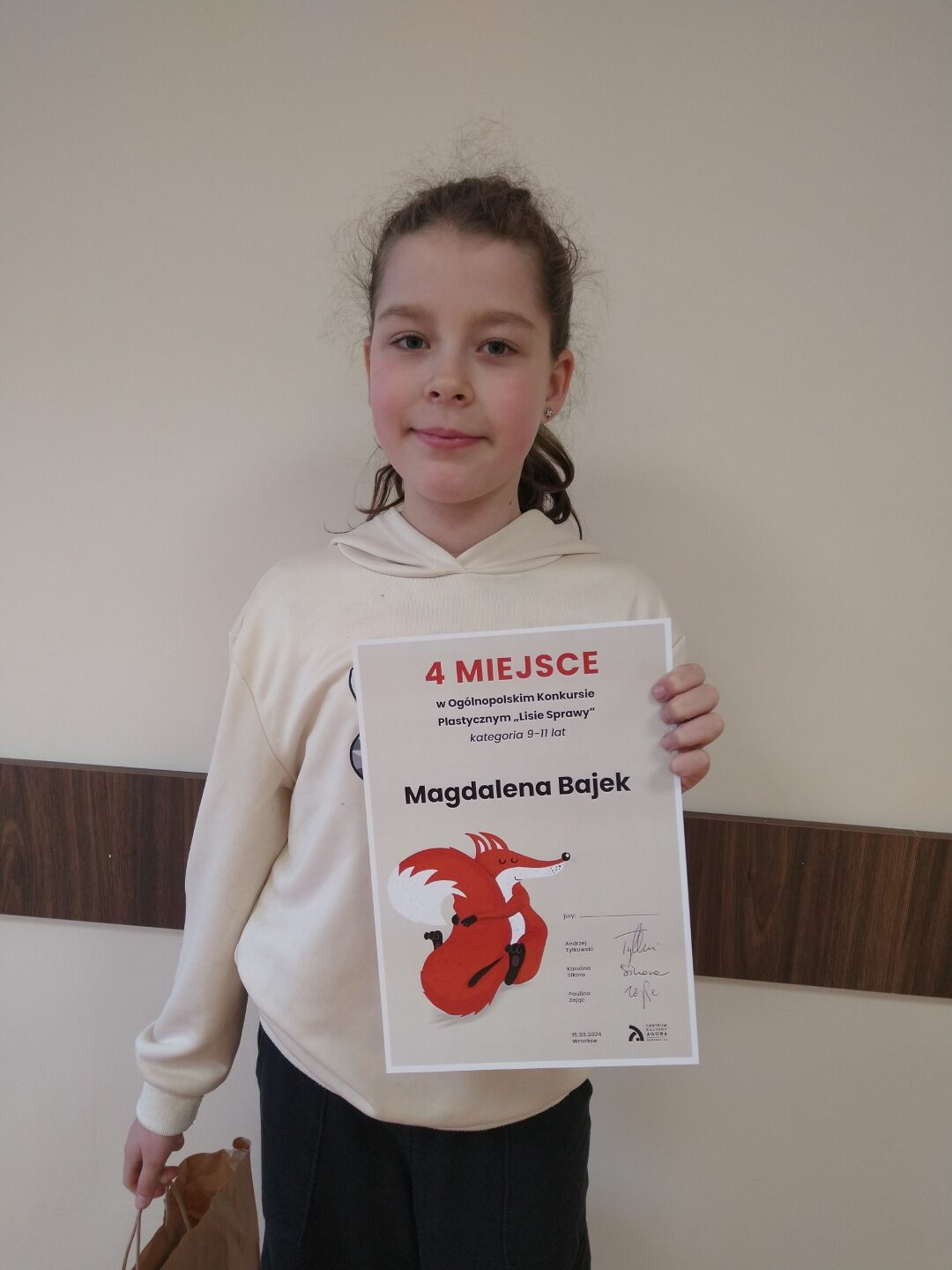 W kategorii 9-11 lat nasza podopieczna zajęć plastycznych Magdalena Bajek zajęła w nim 4 miejsce. Ogromne Gratulacje. Do konkursu przygotowała Pani Instruktor Małgorzata Żoczek. Dziękujemy.