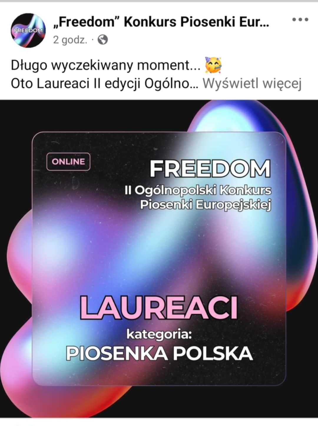 Kamila Janiec zajęła III miejsce w II edycji Ogólnopolskiego Konkursu Piosenki Europejskiej "FREEDOM" w kategorii "piosenka zagraniczna" do 13 lat oraz nagrodę wyróżnienia w kategorii "piosenka polska" Ogromne gratulacje