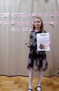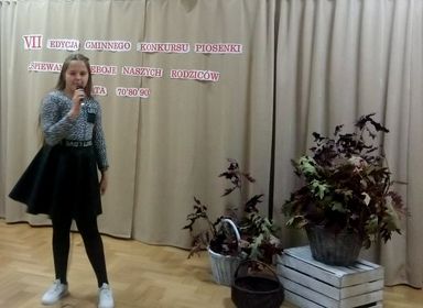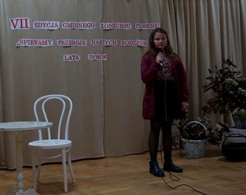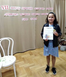16 października 2021 r. odbyła się VII edycja Gminnego Konkursu Piosenki „Śpiewamy przeboje naszych rodziców lata 70’ 80’ 90’. Organizatorem wydarzenia był Wójt Gminy Raniżów oraz Gminny Ośrodek Kultury, Sportu i Rekreacji w Raniżowie. Uczestnicy konkursu oceniani byli w czterech kategoriach wiekowych przez jury w składzie: Piotr Miłosz - instruktor instrumentalno-wokalny, wykonawca muzyczny; Marta Fitał - przedstawiciel Poradni Psychologiczno-Pedagogicznej w Kolbuszowej; Maria Zawada - nauczyciel Zespołu Szkół w Sokołowie Małopolskim oraz Józefa Sałek - emerytowany Kierownik Gminnej Biblioteki Publicznej w Raniżowie. Gminne Centrum Kultury w Jeżowem reprezentowały wszystkie solistki zajęć wokalnych prowadzonych przez panią Izabelę Woś: Martyna Kołodziej, Julia Kolano, Karolina Adamczyk, Dominika Marut, Karolina Marut, Agata Żak, Aleksandra Kuryś i Amelia Sztaba. Wszystkie dziewczyny swoimi wykonaniami wyśpiewały sobie miejsca na podium. W kategorii II – klasy I-III szkoły podstawowej Martyna Kołodziej zdobyła I miejsce (ex aequo), a Dominika Marut – II miejsce (ex aequo). W kategorii III – klasy IV-VI szkoły podstawowej Julia Kolano zdobyła I miejsce (ex aequo), Amelia Sztaba – II miejsce, Karolina Marut, Karolina Adamczyk, Aleksandra Kuryś, Agata Żak – III miejsce. Dziękujemy Gminnemu Ośrodkowi Kultury Sportu i Rekreacji w Raniżowie za możliwość występu, a dziewczynom życzymy kolejnych śpiewających sukcesów.