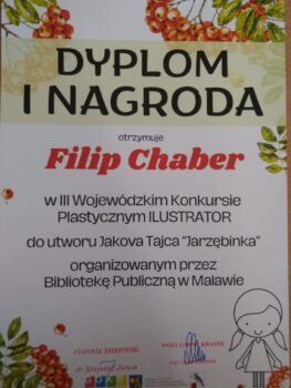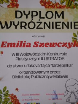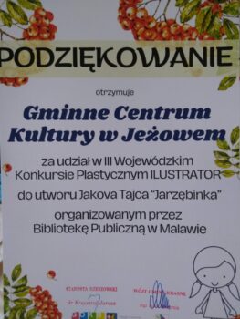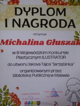 📢W dniu 26 listopada odbyło się wręczenie nagród w III Wojewódzkim Konkursie Plastycznym ILLUSTRATOR 🖼️ do utworu Jakova Tajca „Jarzębinka” organizowanym przez Bibliotekę Publiczną w Malawie.