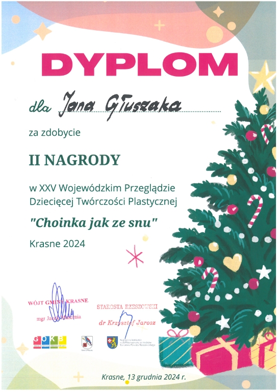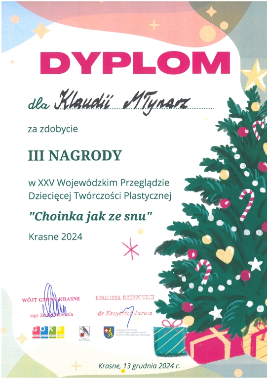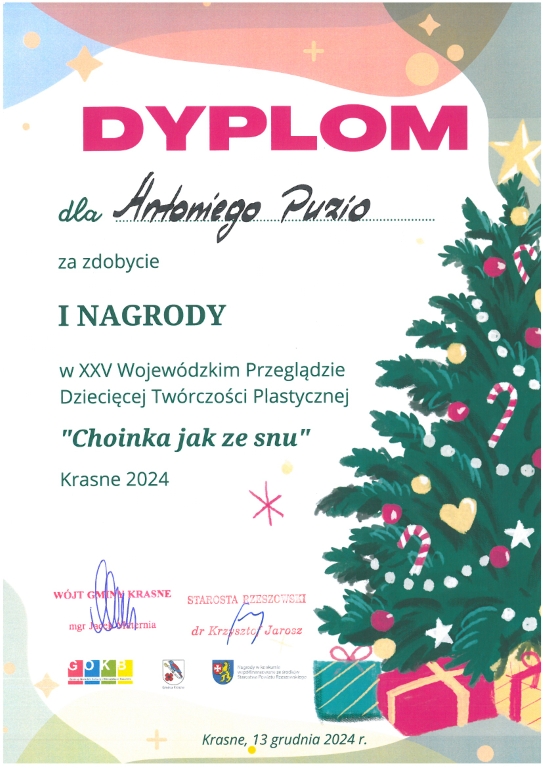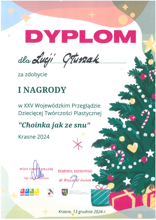 W dniu 13 grudnia w Krasnem odbyło się wręczenie nagród w XXV Wojewódzkim Przeglądzie Dziecięcej Twórczości Plastycznej „Choinka jak ze snu”.