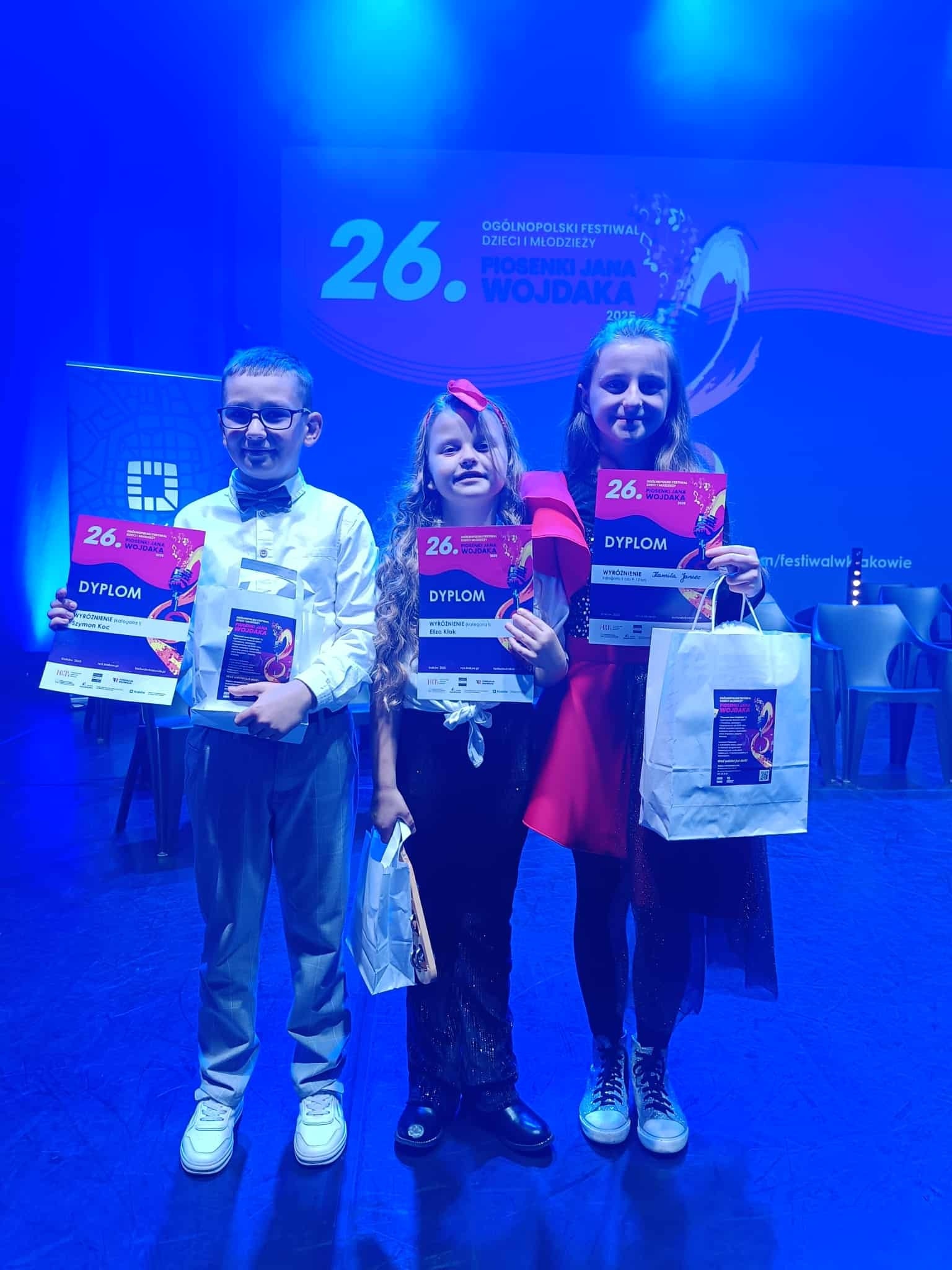 Eliza Kłak, Szymon Koc i Kamila Janiec wyśpiewali aż trzy nagrody wyróżnienia 🎤🏆 podczas 26. Ogólnopolskiego Festiwalu Dzieci i Młodzieży Piosenki Jana Wojdaka w Krakowie!!! 🤩🤩🤩