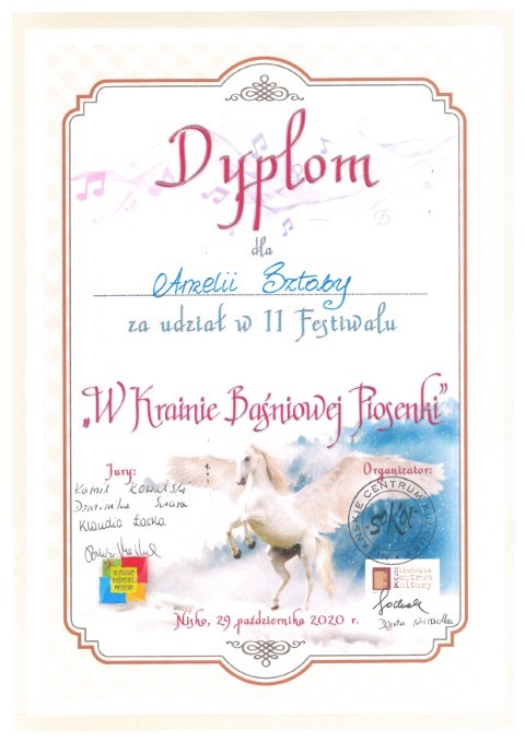 W październiku 2020 r. Amelia Sztaba, Karolina Marut, Julia Kolano wzięły udział w II Festiwalu "W Krainie Baśniowej Piosenki" organizowanym przez Niżańskie Centrum Kultury "Sokół" w Nisku.