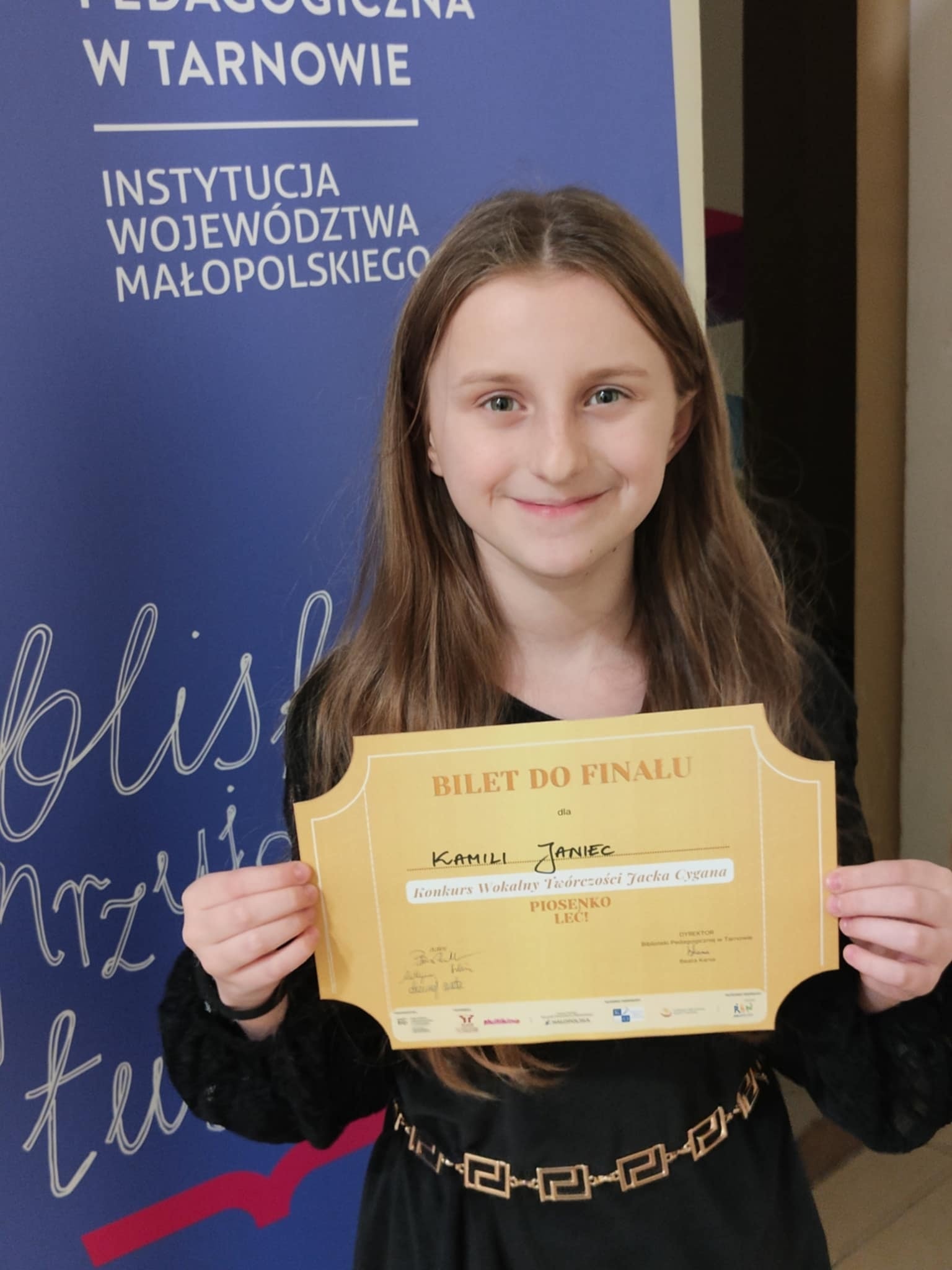 Po przejściu aż dwóch wymagających etapów eliminacyjnych, Kamilka znalazła się w ścisłym finale Ogólnopolskiego Festiwalu Jacka Cygana! 🌟🎤