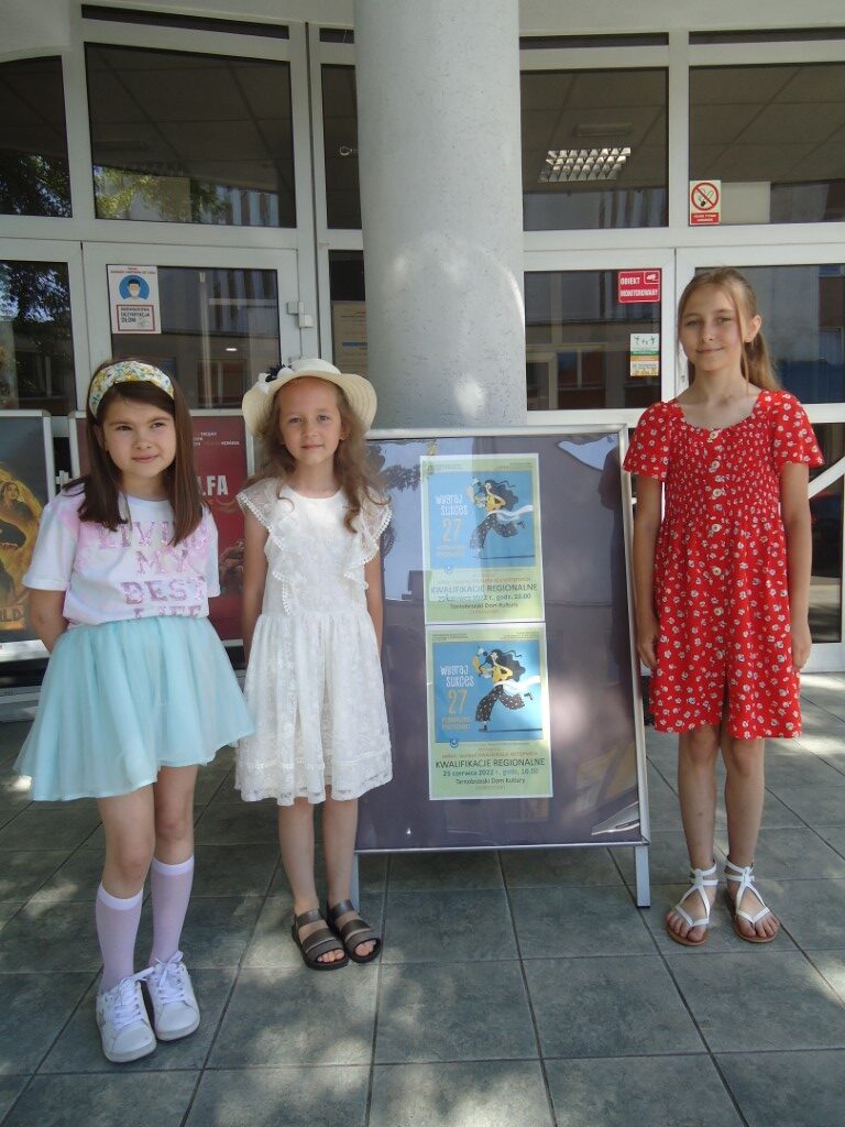 Nasze wokalistki Martynka Kołodziej, Martynka Łukasiewicz i Julia Kolano wzięły udział w kwalifikacjach regionalnych 27 Ogólnopolskiego Konkursu Piosenki „Wygraj sukces”,. Eliminacje odbyły się 25 czerwca 2022 r. w Tarnobrzegu. Dziewczynki, oprócz piosenki obowiązkowej z płyt „Wygraj sukces”, zaśpiewały utwory z repertuaru Majki Jeżowskiej „Pa, aa, aa..”, „Kapelusze, kapelusze” i Hanny Banaszak „W moim magicznym domu”. Dziewczynki szlifują swój talent pod czujnym okiem Pani Instruktor Katarzyny Rokoszyńskiej. Wszyscy występujący wokaliści zaprezentowali się na bardzo wysokim poziomie. Gratulujemy wyłonionym finalistom i wszystkim występującym młodym artystom.
