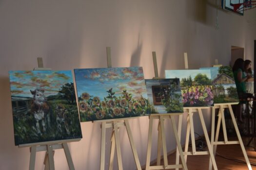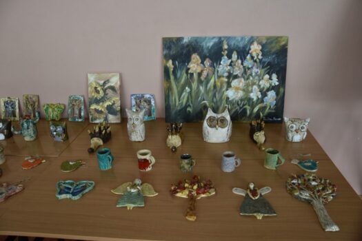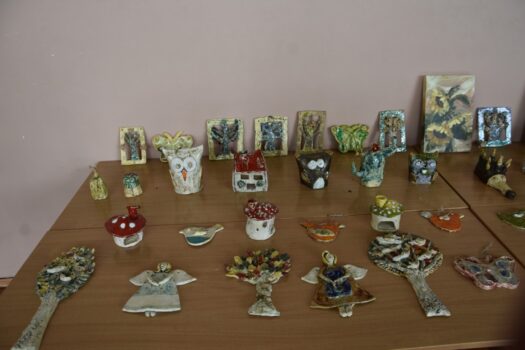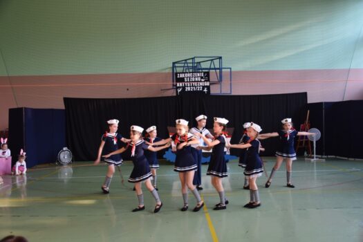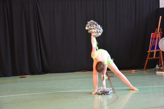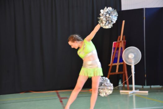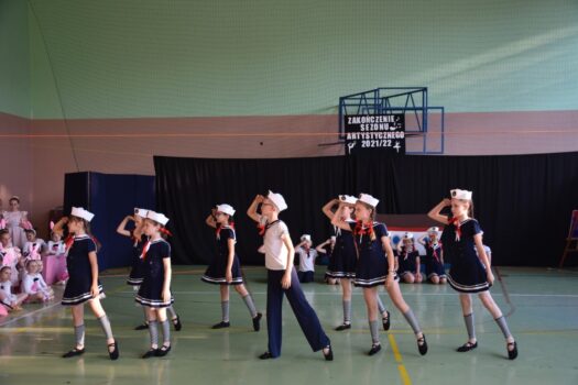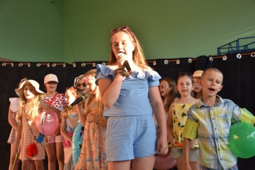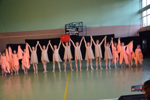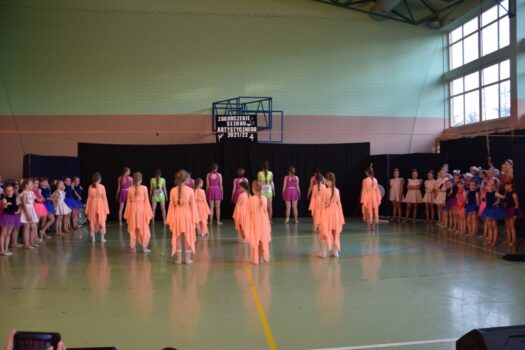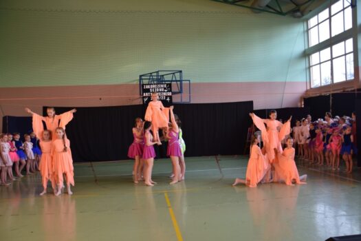 Atmosfera tego popołudnia była naprawdę gorąca – nie tylko ze względu na panujące wysokie temperatury. W wakacyjną atmosferę wprowadziły nas letnie piosenki zaśpiewane przez dzieci z grupy wokalnej. W siedmiu przepięknych układach z wykorzystaniem barwnych kostiumów i misternie wykonanych dekoracji wystąpiły poszczególne grupy wiekowe z zespołu tanecznego Sardian (oddziały z Jeżowego, Cholewianej Góry i Starego Nartu). Rekwizyty były ważnym elementem także fenomenalnego, ośmioczęściowego programu przygotowanego przez zespół mażoretek Fortis, który zaprezentował się m.in. w układach: defiladowym, cheerleaderskim czy flagowym. Imprezie towarzyszyła wystawa najlepszych dzieł, przygotowanych przez uczestników zajęć prowadzonych w naszej pracowni ceramiczno-plastycznej. Wystawa cieszyła się dużym zainteresowaniem publiczności, która zresztą mimo upałów licznie pojawiła się w hali dawnego gimnazjum i nie szczędziła oklasków występującym.