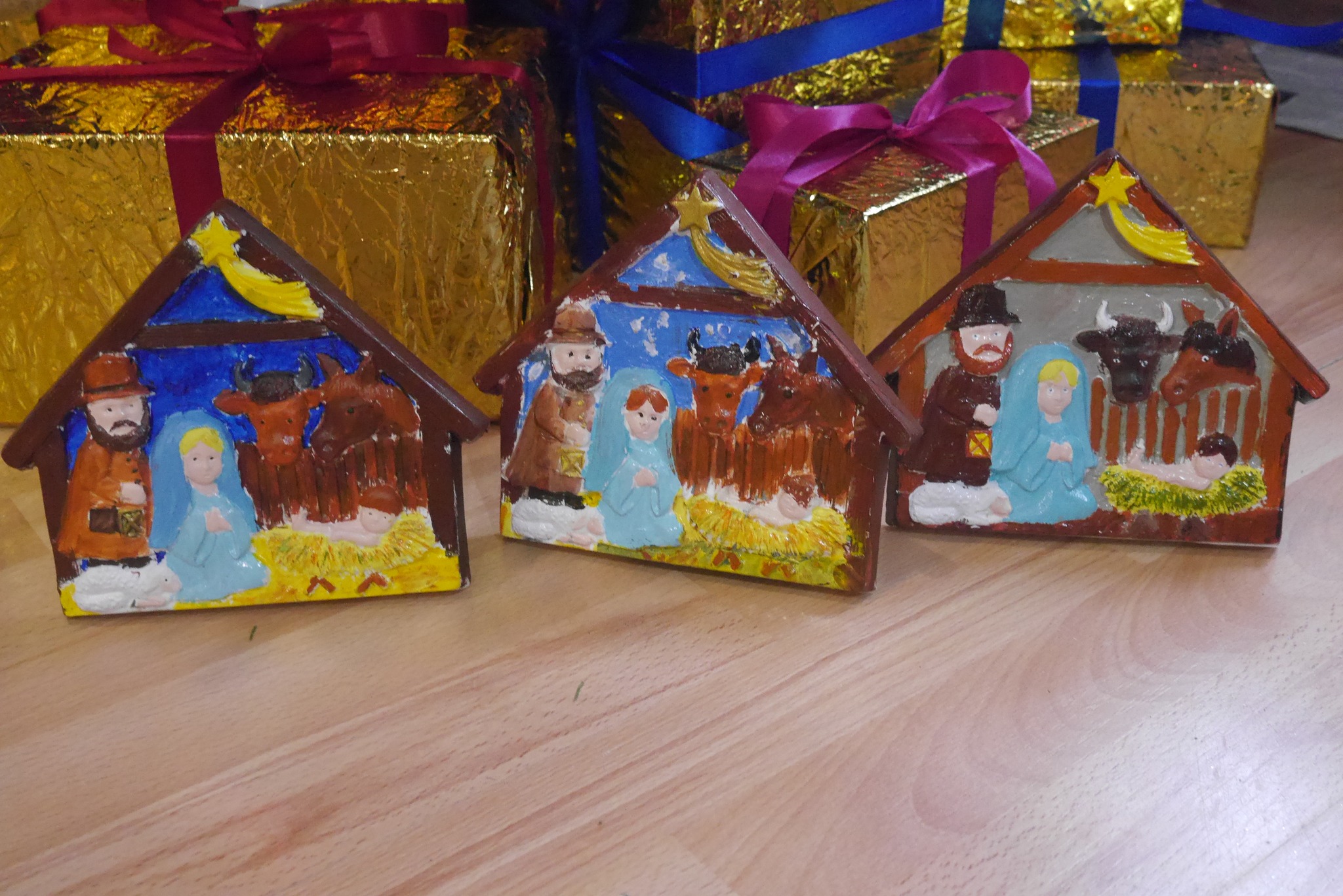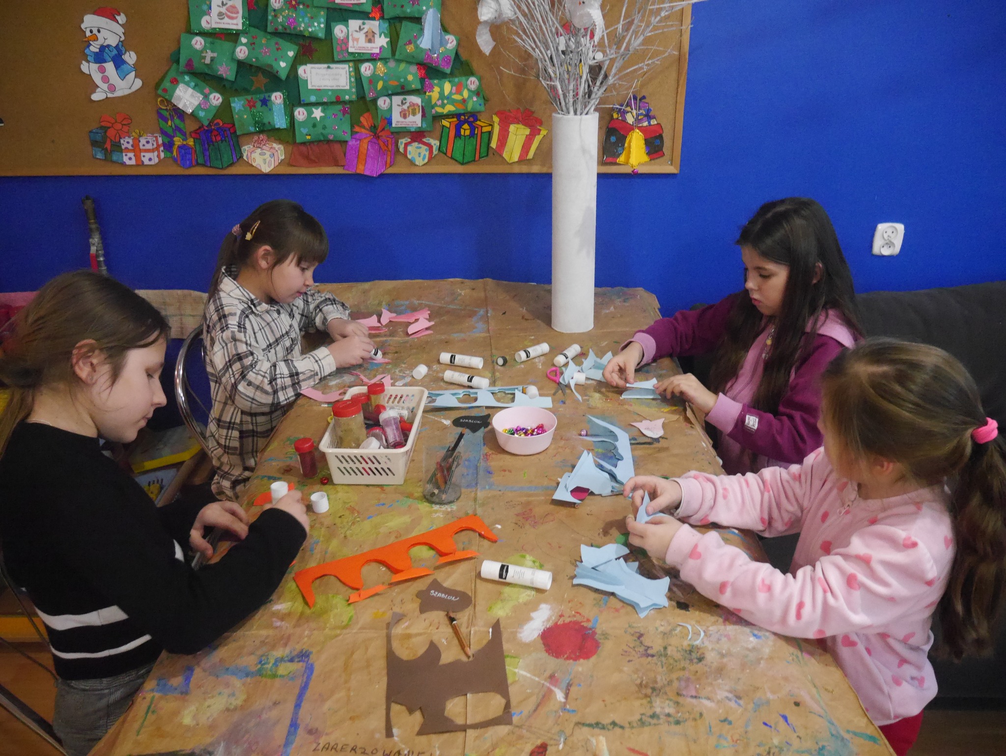 Podczas zajęć dzieci tworzyły papierowe dzwonki 🔔, malowały gipsowe szopki 🎨⛪, wykonywały kolorowe kartki świąteczne ✉️🎁 oraz przygotowywały piękne wianki z bibuły 🌿✨. Każda praca była wyjątkowa i niepowtarzalna, a uśmiechy na twarzach dzieci były najlepszym dowodem radości z twórczego działania 😊