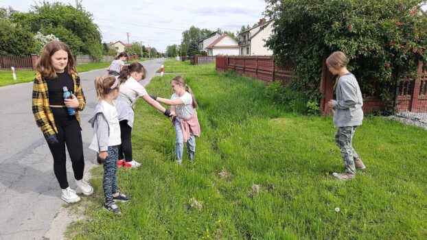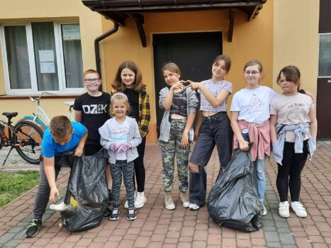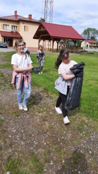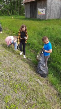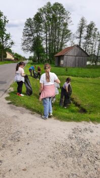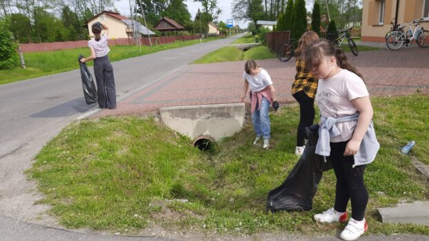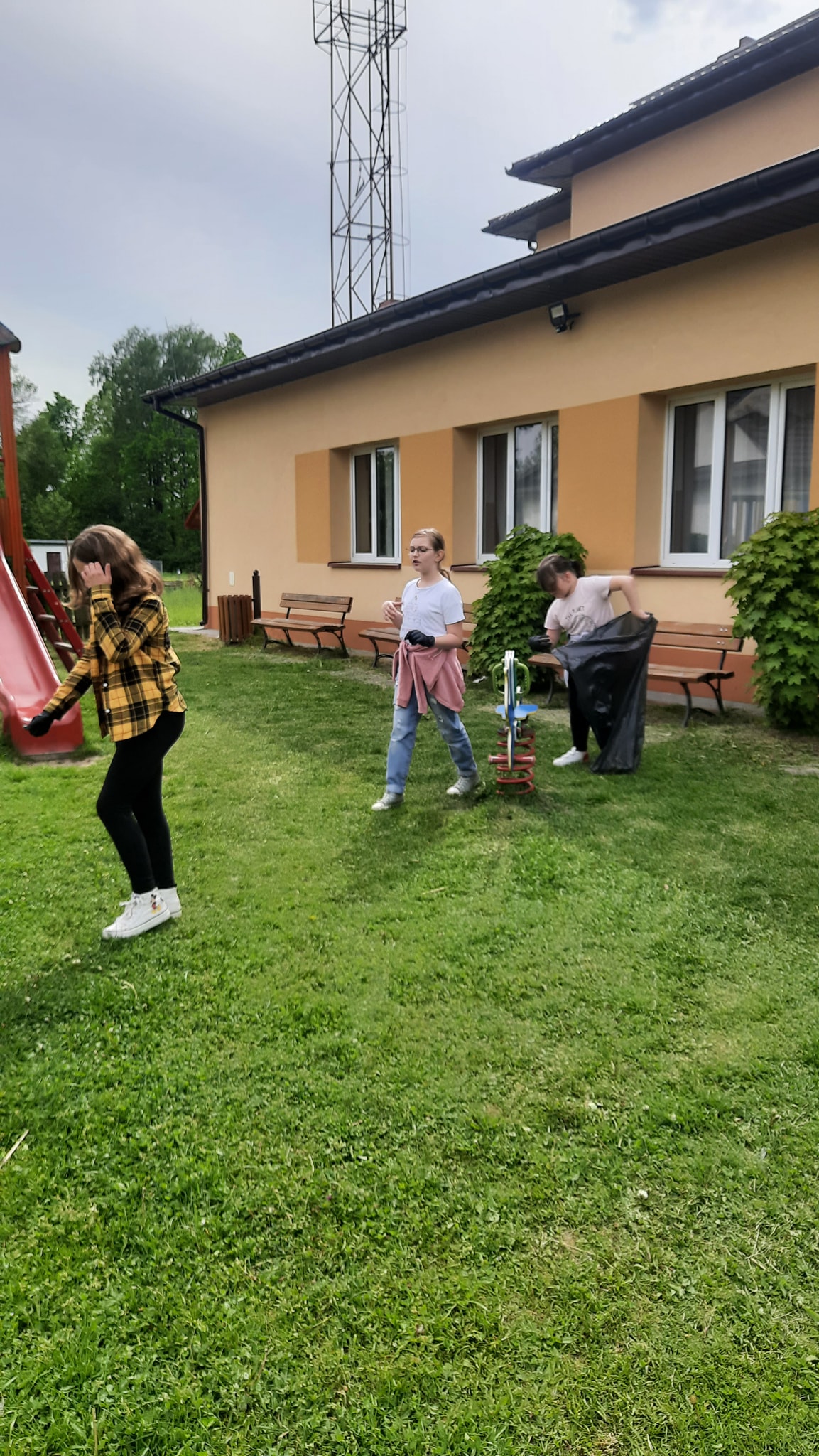 Fotorelacja z akcji "Czysty Powiat Niżański" Dziś dzieci wysprzątały okolicę świetlicy Wiejskiej w Jacie