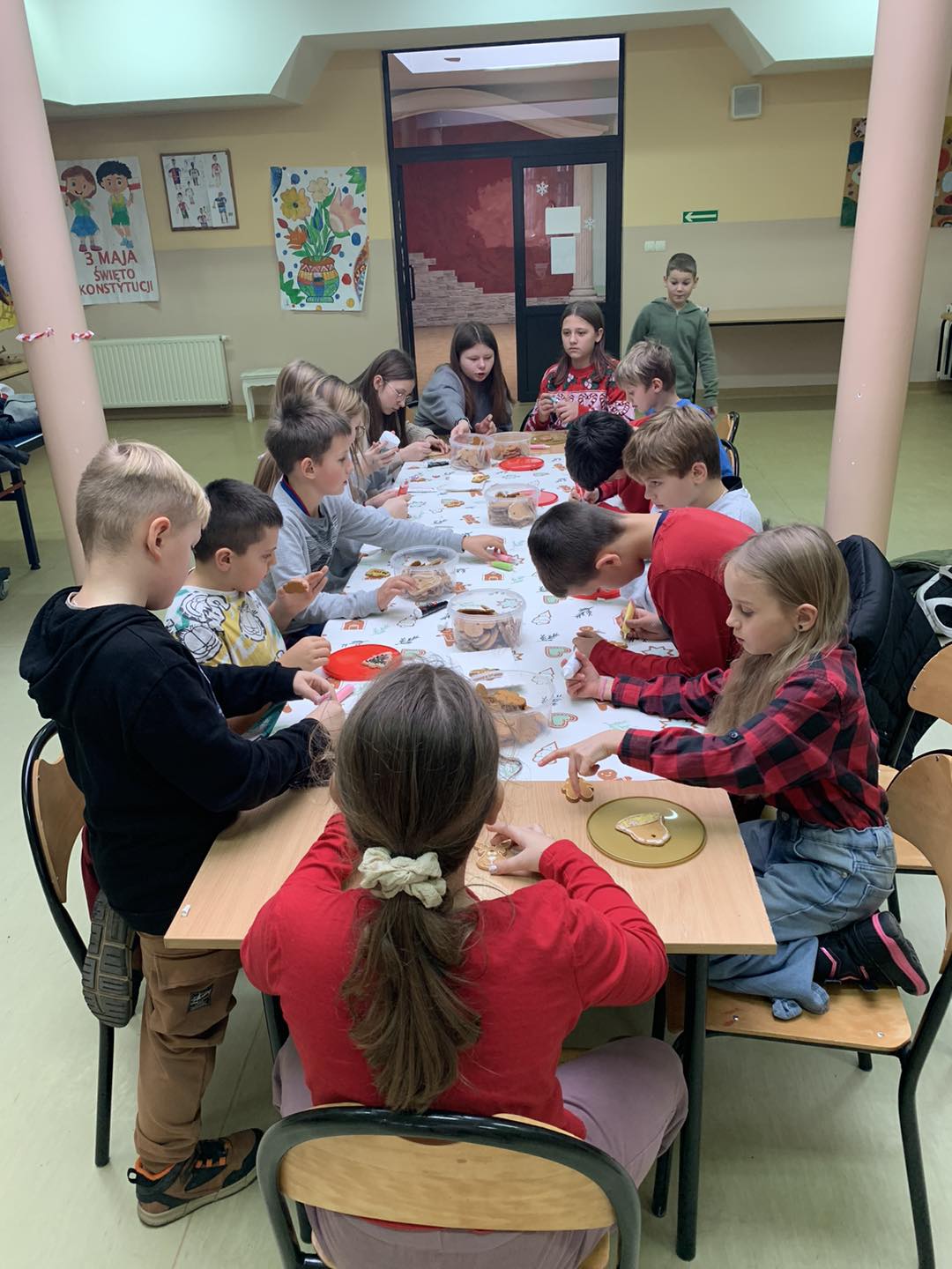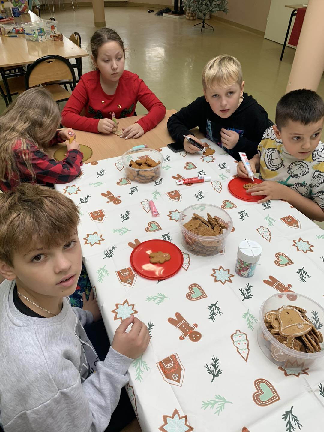 Dzieci z ogromnym zapałem i radością ozdabiały pierniczki, tworząc przepiękne, kolorowe i oczywiście baaardzo słodkie dzieła sztuki. 🍪✨ Każdy pierniczek był wyjątkowy – pełen barw, lukru i kreatywności! 🎨💖