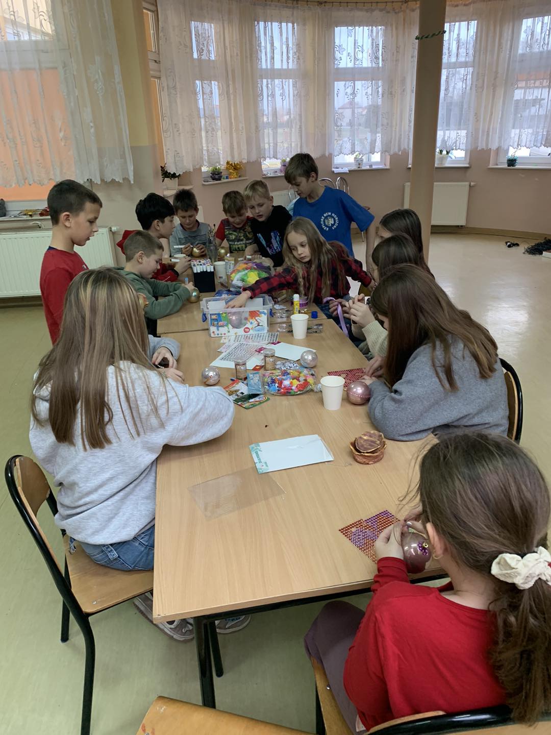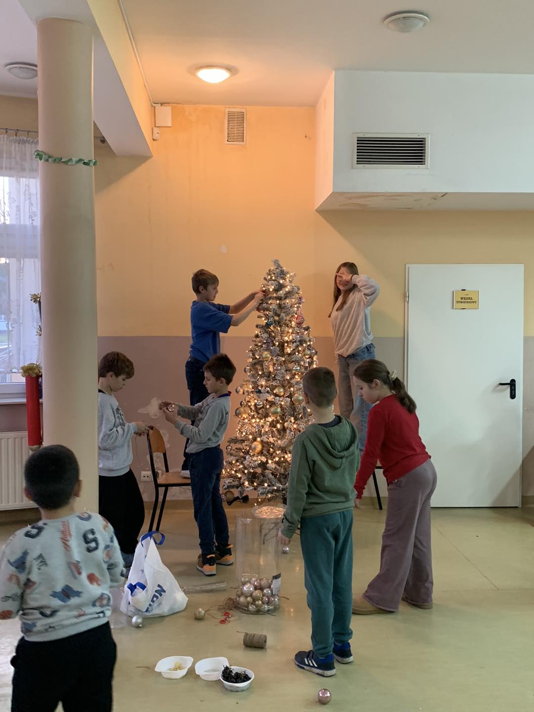 Nie zabrakło także wspaniałej zabawy plastycznej – malowanie bombek oraz ubieranie choinki wywołało mnóstwo zachwytów i szerokich uśmiechów na twarzach najmłodszych. 🎁🌟 Dzieci z dumą prezentowały swoje własnoręcznie wykonane ozdoby, które wprowadziły jeszcze więcej świątecznego blasku. ✨🎄