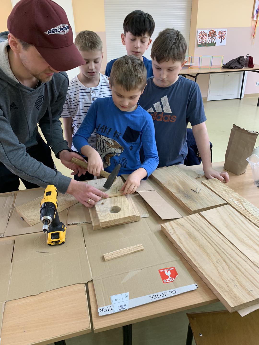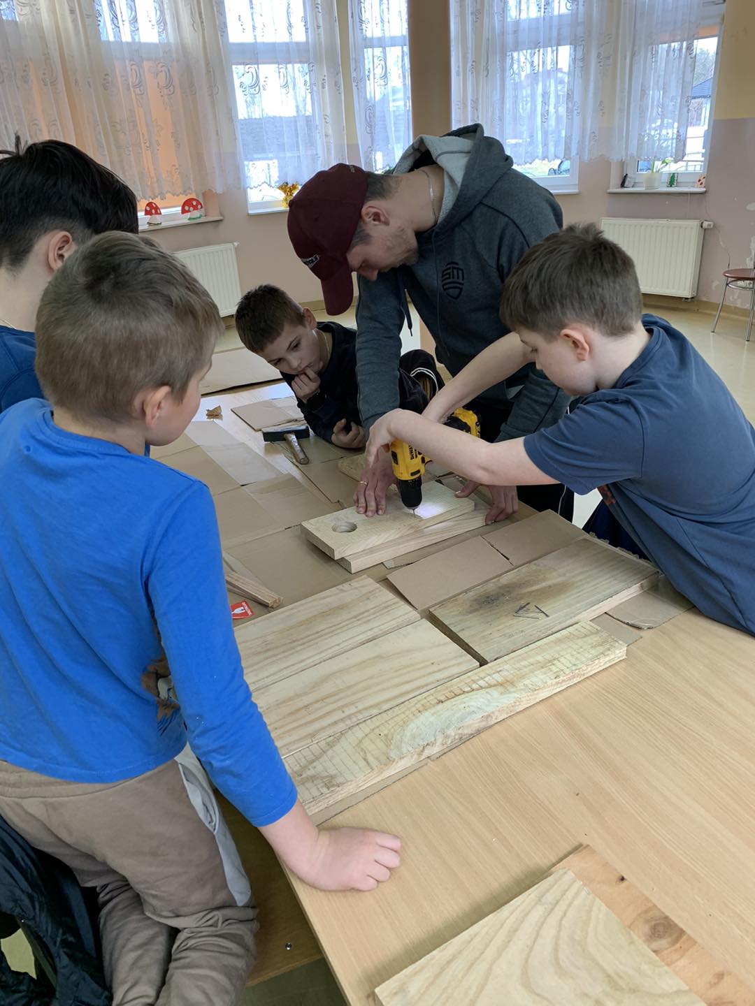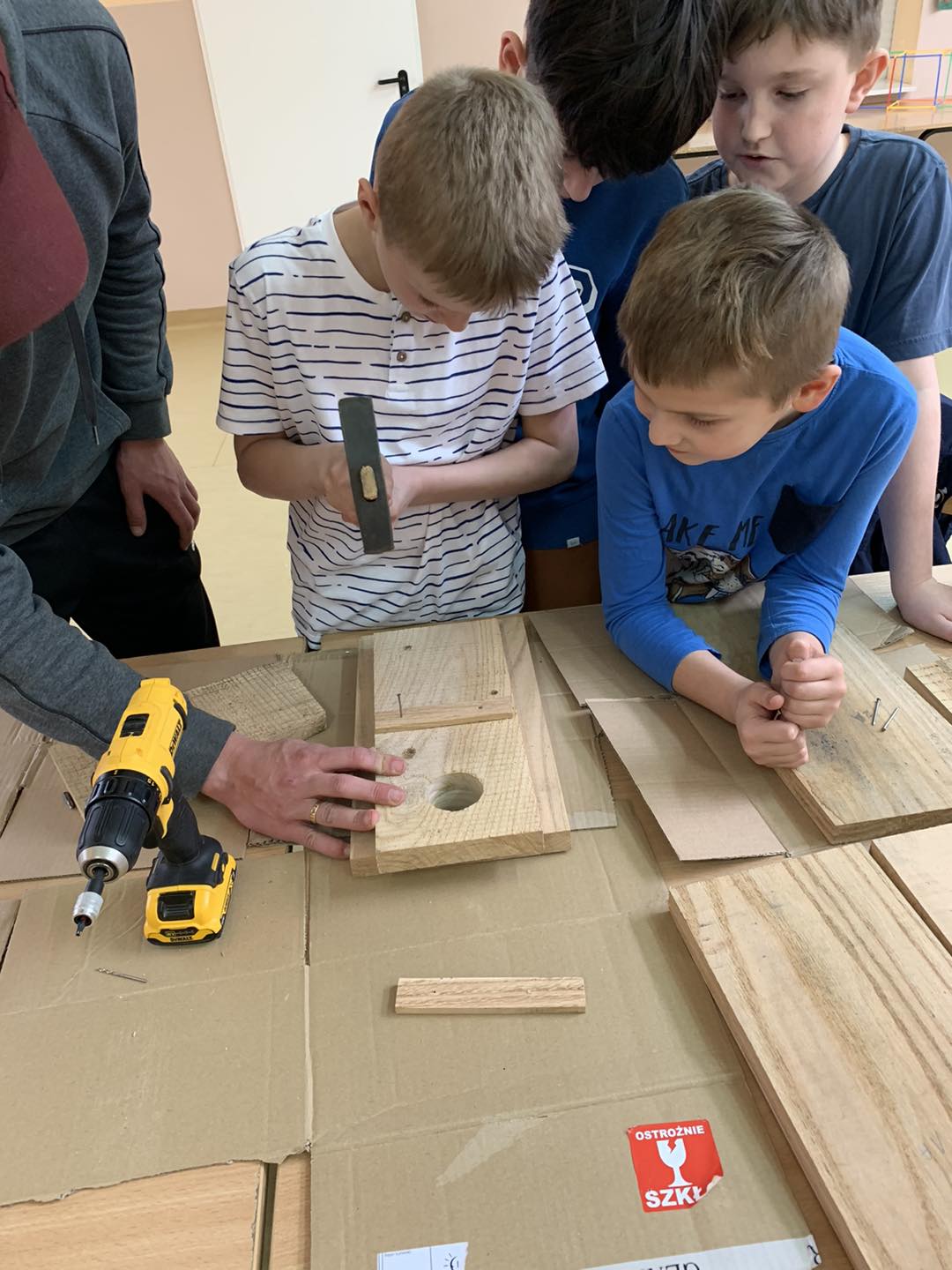 W ostatnich dniach w naszej świetlicy dzieci miały okazję wziąć udział w wyjątkowych warsztatach prowadzonych przez Pana Szczepana. Przygotowane wcześniej elementy budek lęgowych zostały złożone przez małych majsterkowiczów, którzy z wielkim zaangażowaniem przybijali gwoździe i skręcali poszczególne części.