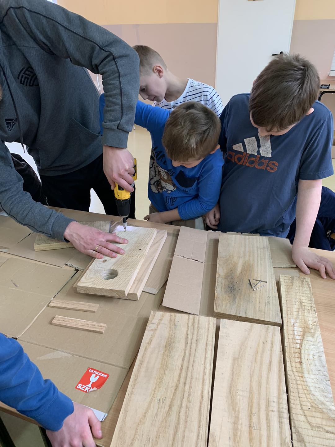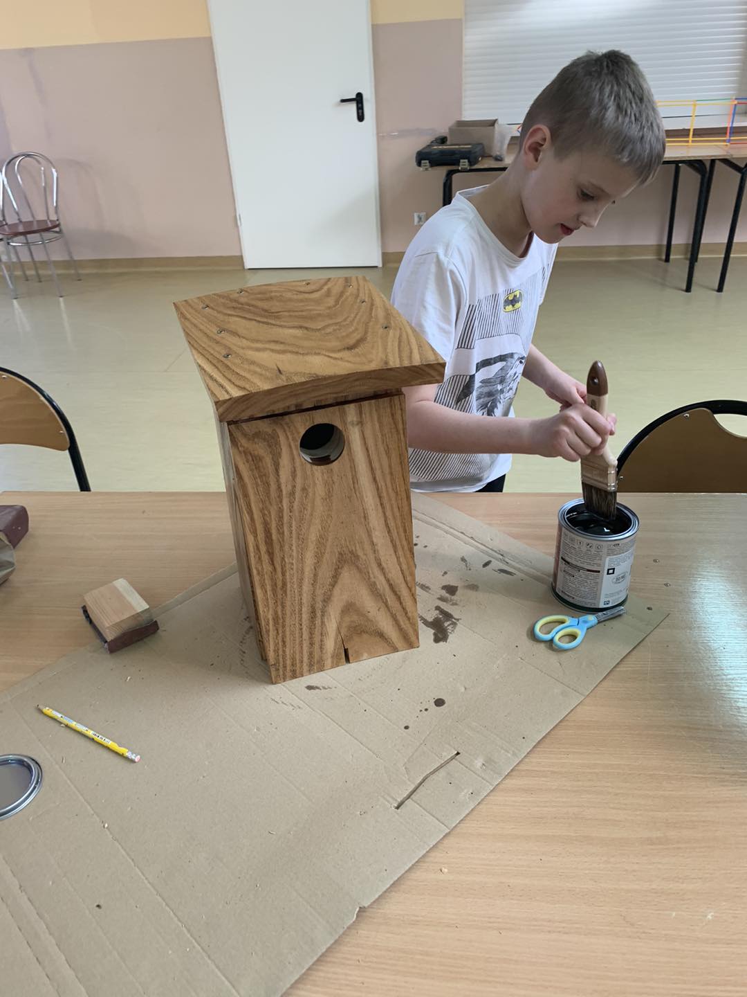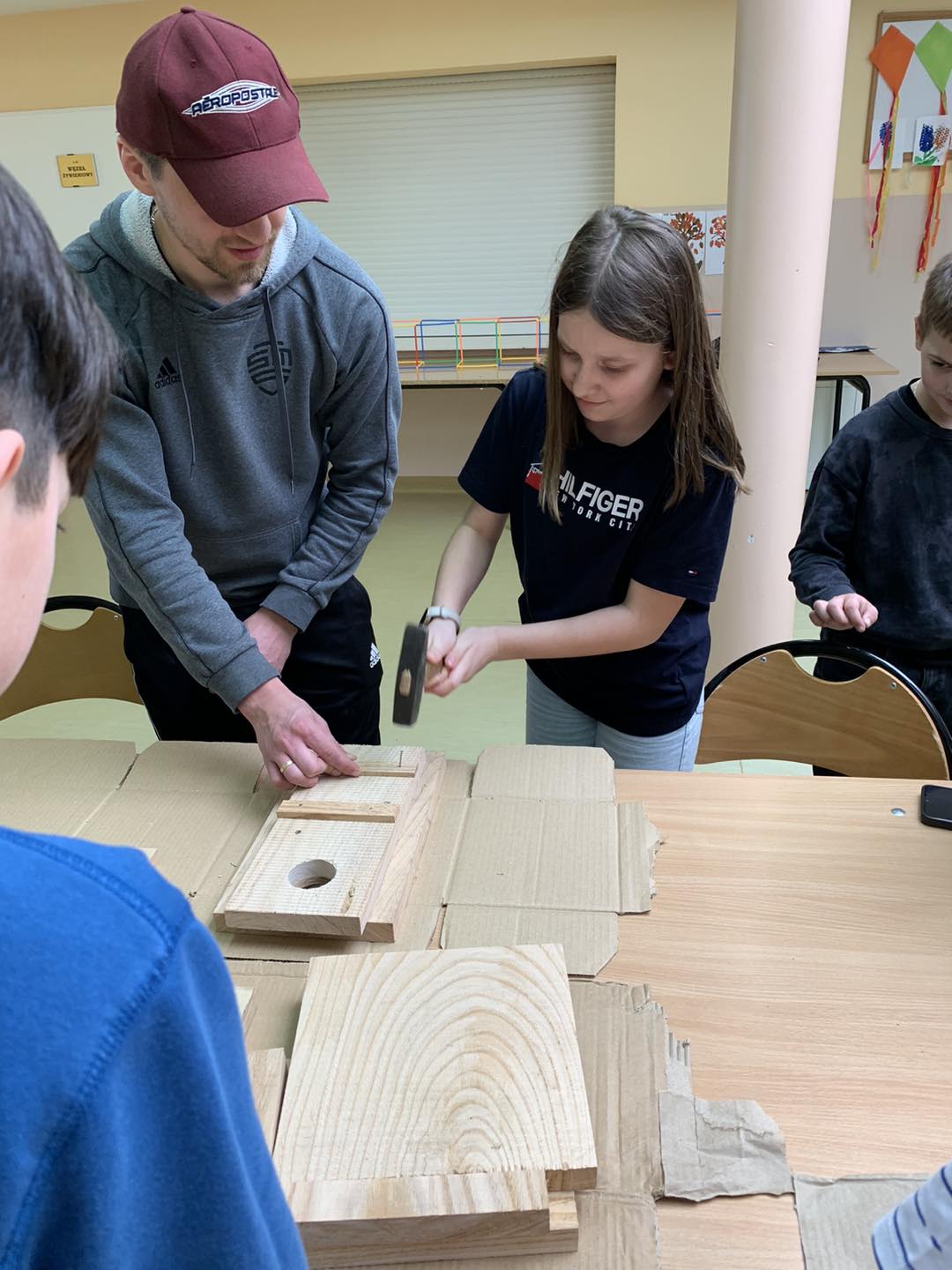 W ostatnich dniach w naszej świetlicy dzieci miały okazję wziąć udział w wyjątkowych warsztatach prowadzonych przez Pana Szczepana. Przygotowane wcześniej elementy budek lęgowych zostały złożone przez małych majsterkowiczów, którzy z wielkim zaangażowaniem przybijali gwoździe i skręcali poszczególne części.