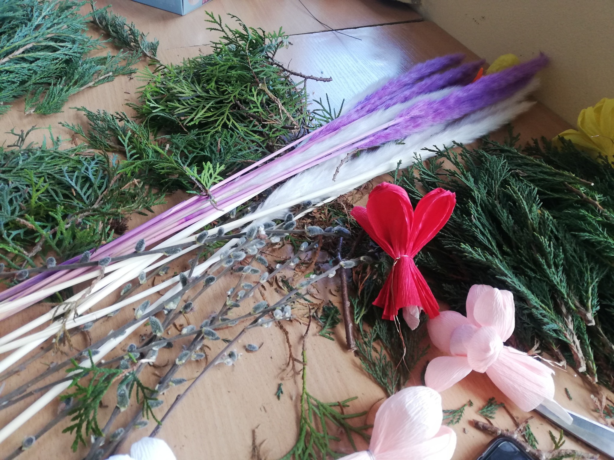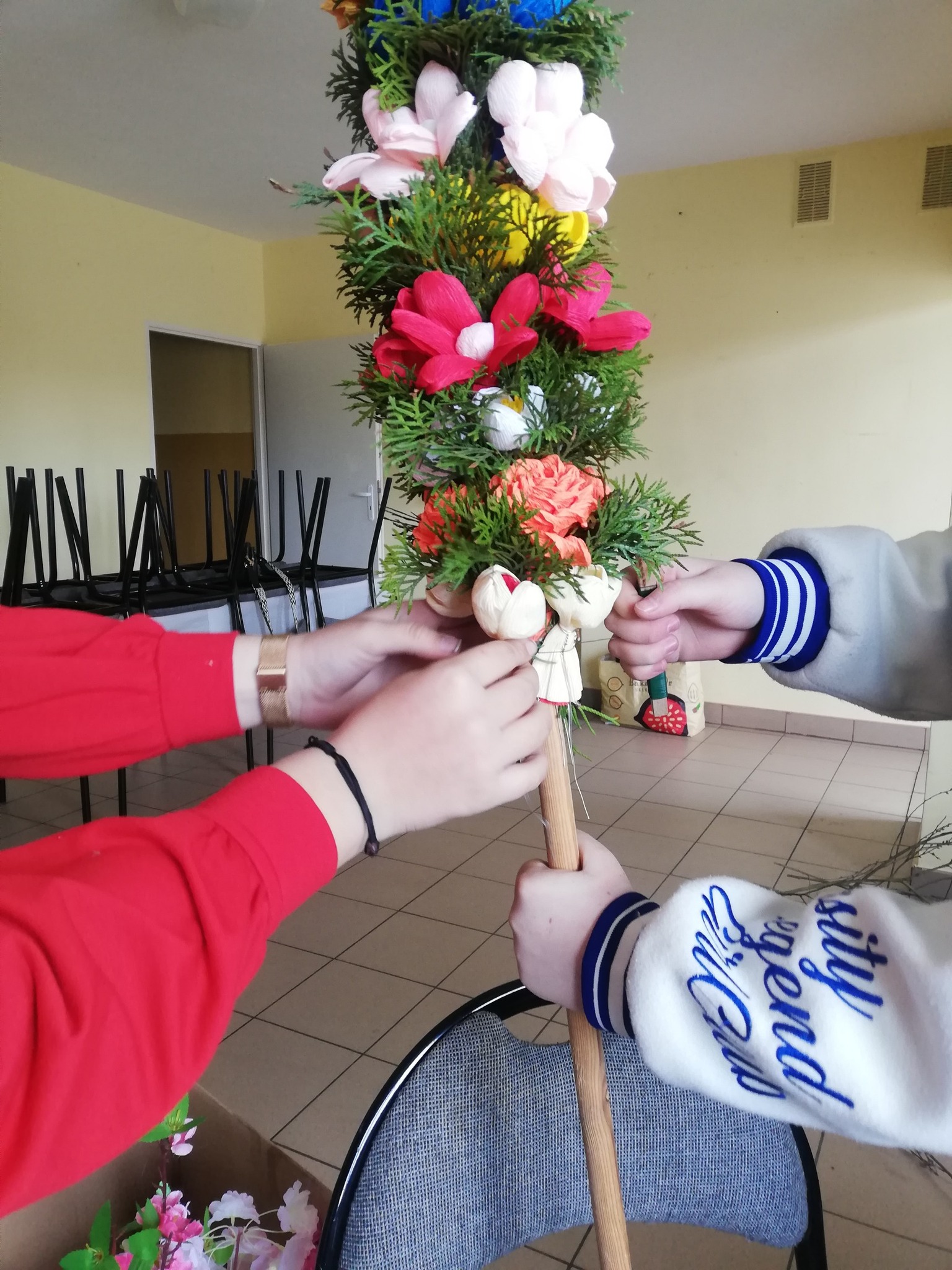 Podczas zajęć w świetlicy młodzież z Krzywd własnoręcznie wykonała palmę wielkanocną.