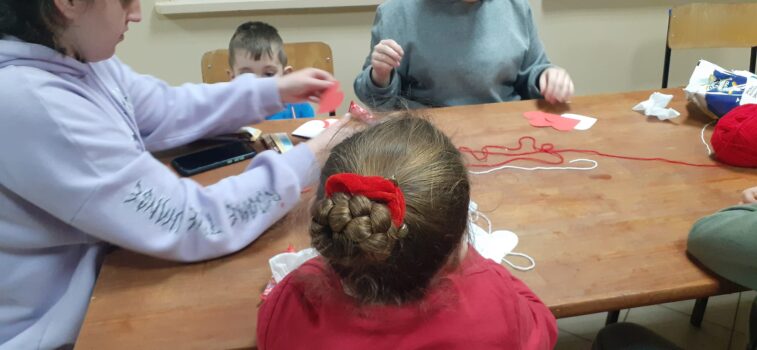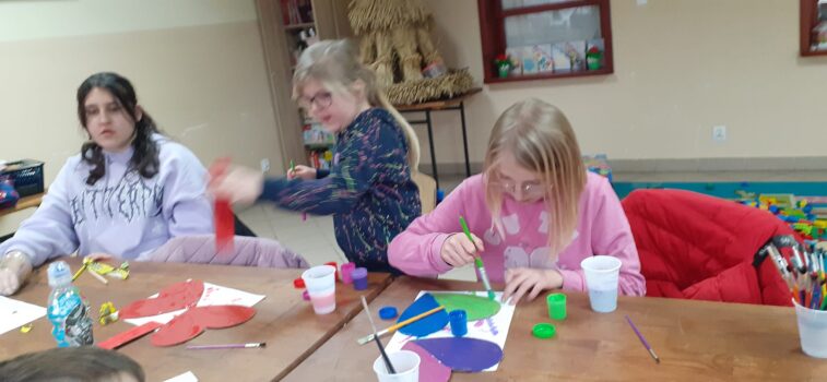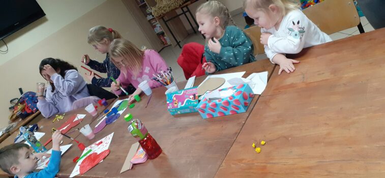Z okazji Walentynek uczestnicy zajęć w obu świetlicach wykonali prace plastyczne