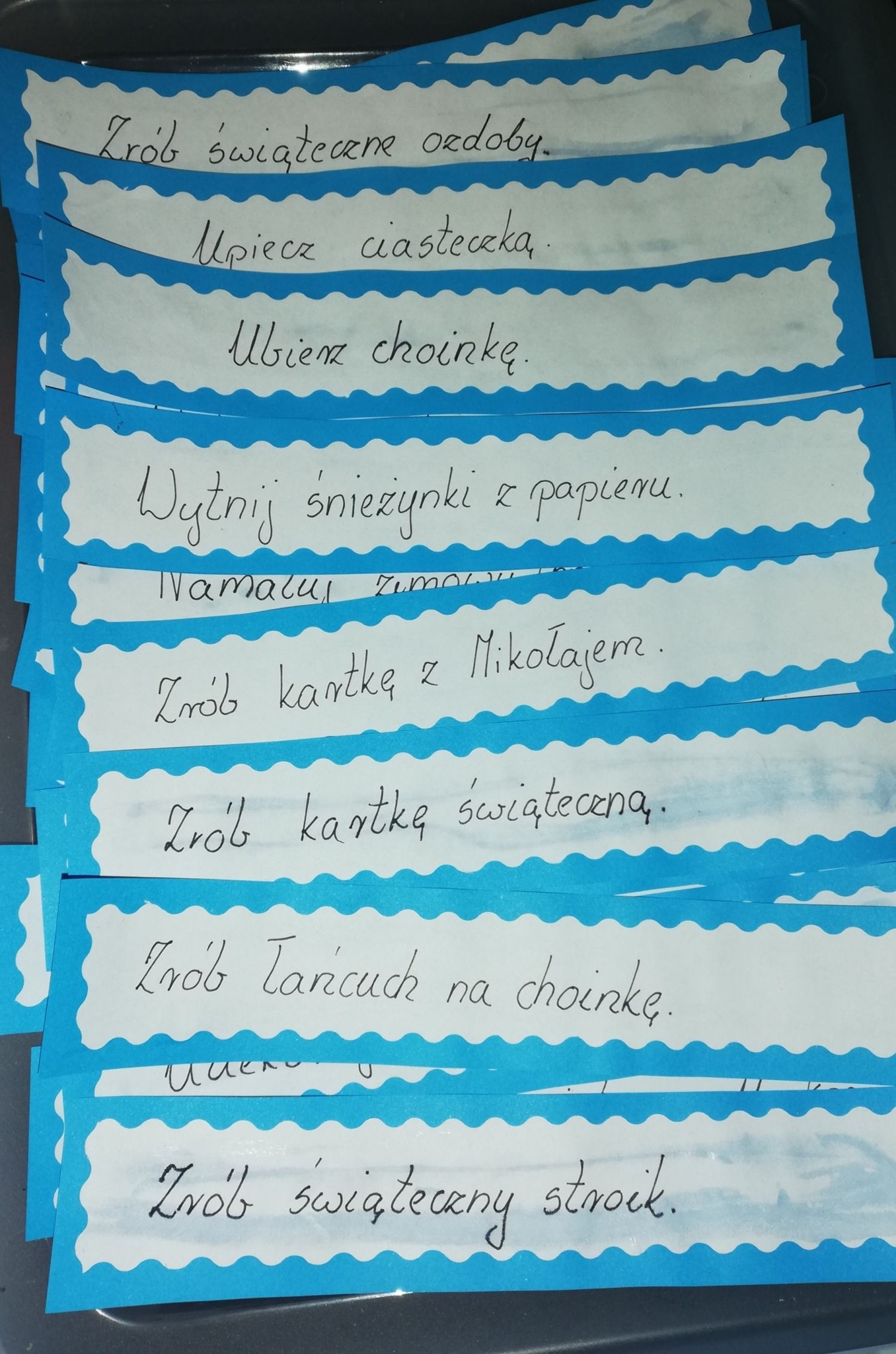 Zapraszam do obejrzenia fotorelacji z zajęć świetlicowych podczas których dzieci i młodzież przygotowały dekoracje świąteczne. Przygotowania do świąt zaczęliśmy od wykonania kalendarza adwentowego w którym znalazły się karteczki z zadaniami, jak również drobne upominki. Dzieci ubrały również świetlicową choinkę, wykonały stroiki i ozdoby świąteczne.